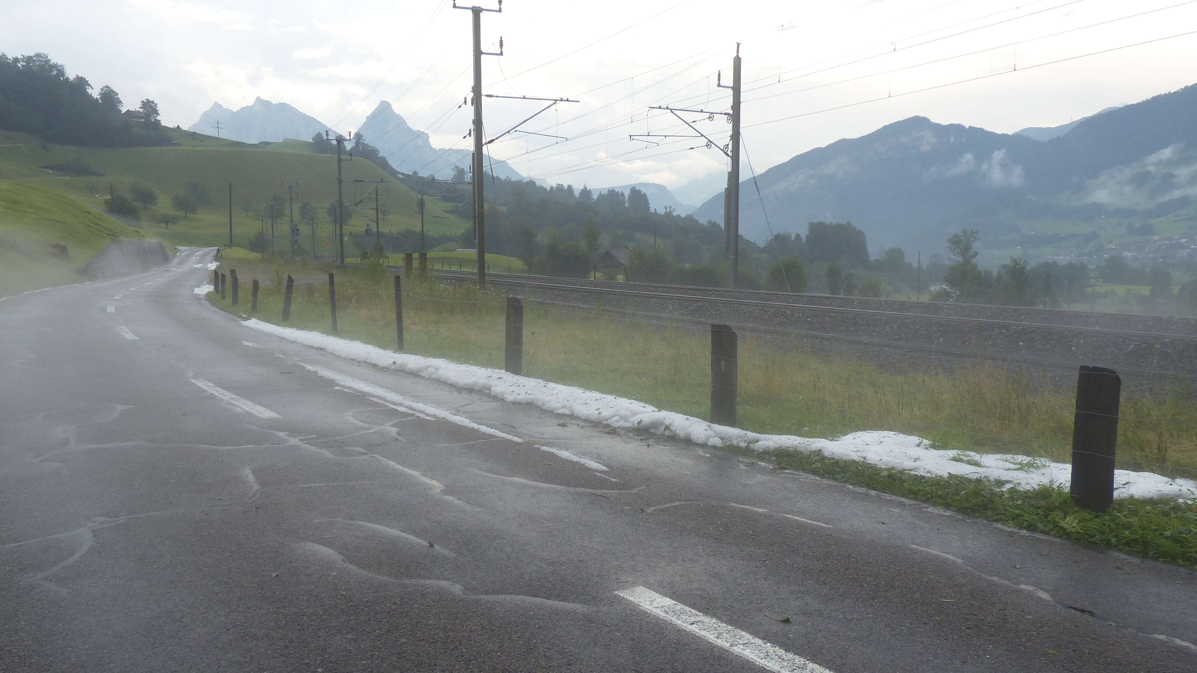 Um 17 Uhr ist eine weitere Hagelzelle über die Rigi gezogen. Davon habe ich ein paar Spuren in Goldau Richtung Steinen gesehen.