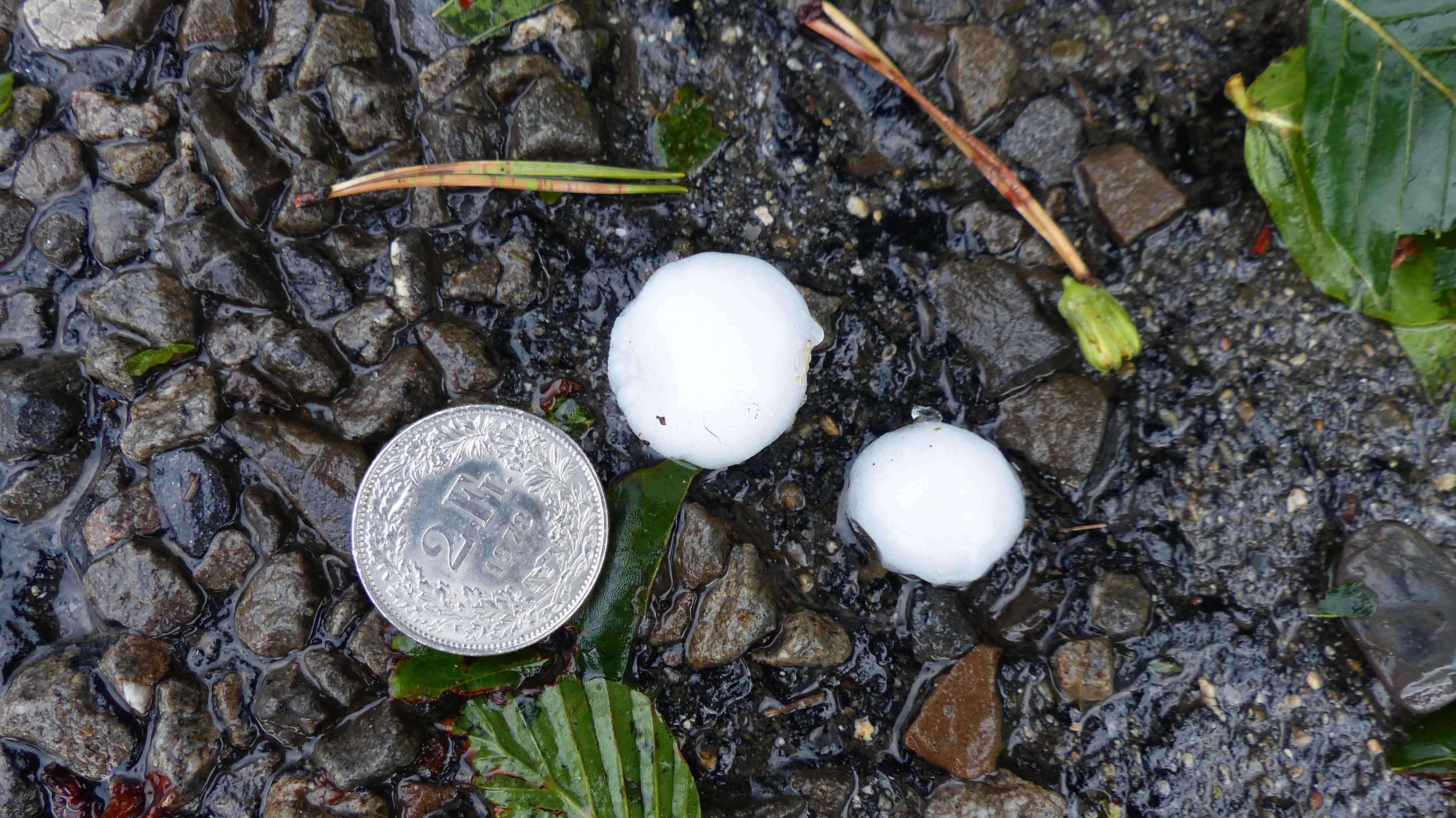 Die Hagelkörner waren ca. 1 – 1.5 cm gross.