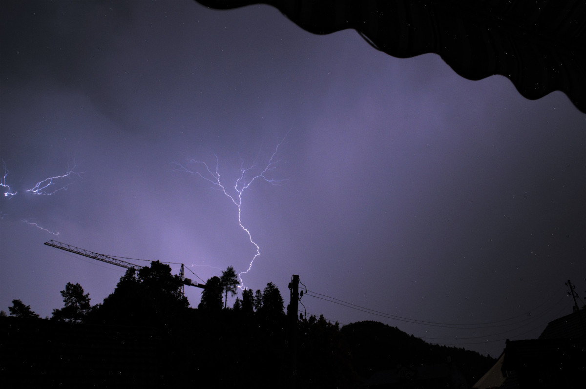 Über Bern im Sekundentakt..danach noch den Rücken der weiterziehenden Zelle im Emmental erwischt.
