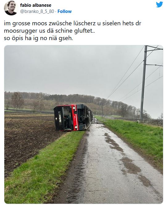 Ich vermute die Windböen waren am Jurasüdfuss stärker als das, was an den Wetterstationen gemessen wurde. 140 km/h reichen nicht, um eine Zugskomposition meterweit aus den Gleisen zu heben. Da kann man mir erzählen was man will. Ich gehe von lokal weitaus höheren Windspitzen aus (140 bis 180 km/h) in diesem Fall.