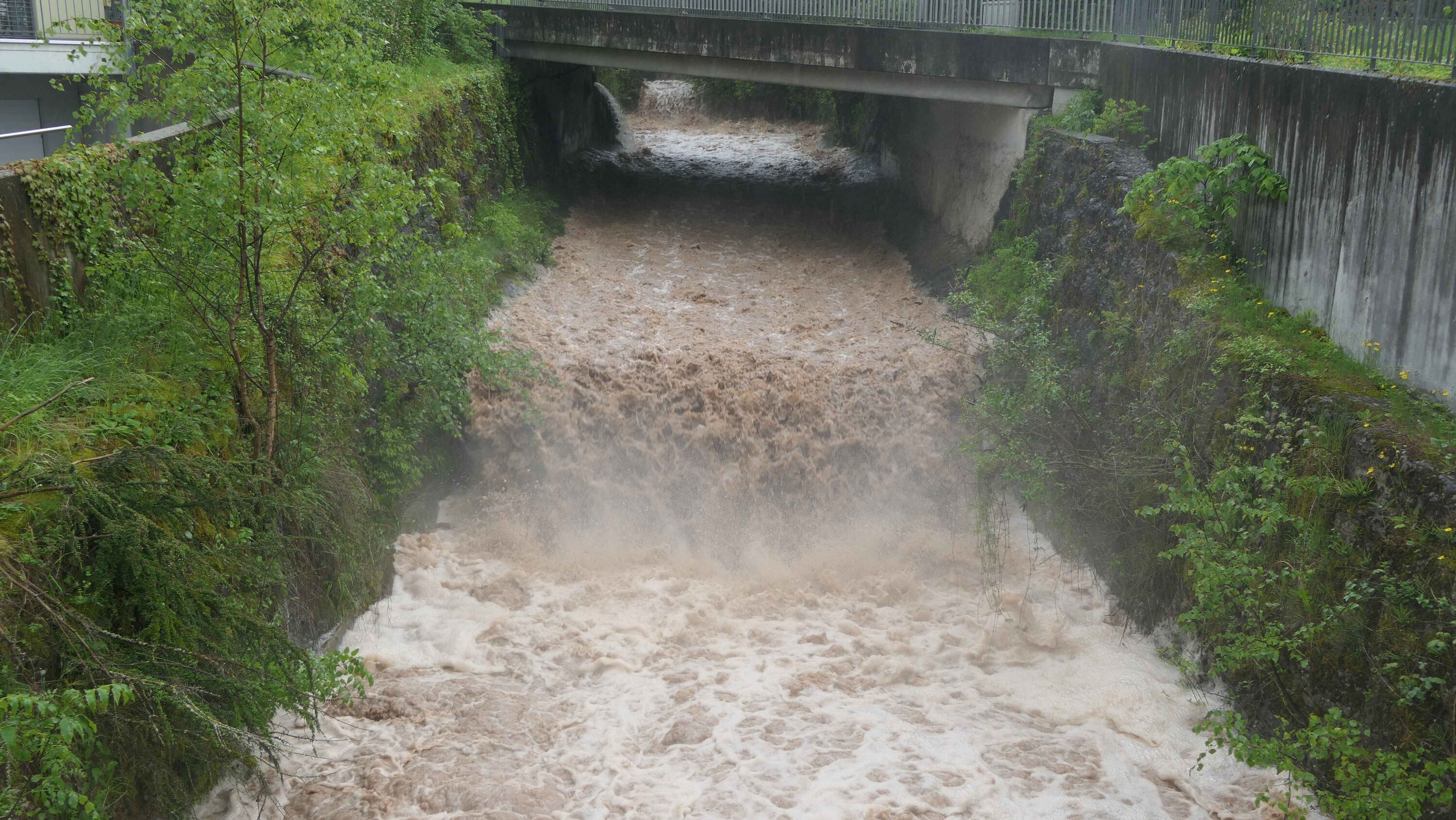 Zwischen 15:30 und 16:30 Uhr hatte es im Einzugsgebiet der Rigi Aa grossflächig über 20mm Niederschläge gegeben. Daraus entstand dieses Hochwasser.