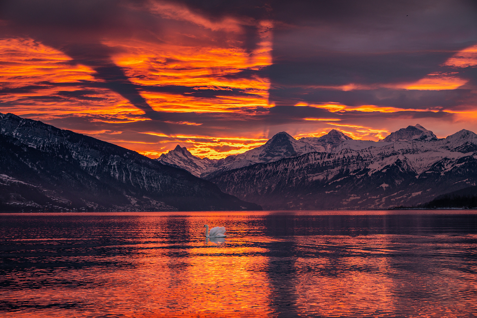 Während dem Morgenrot "durchkreuzte" ein Schwan die Szenerie. Ob er die Morgenstimmung auch genossen hat? Siehe Bild:
