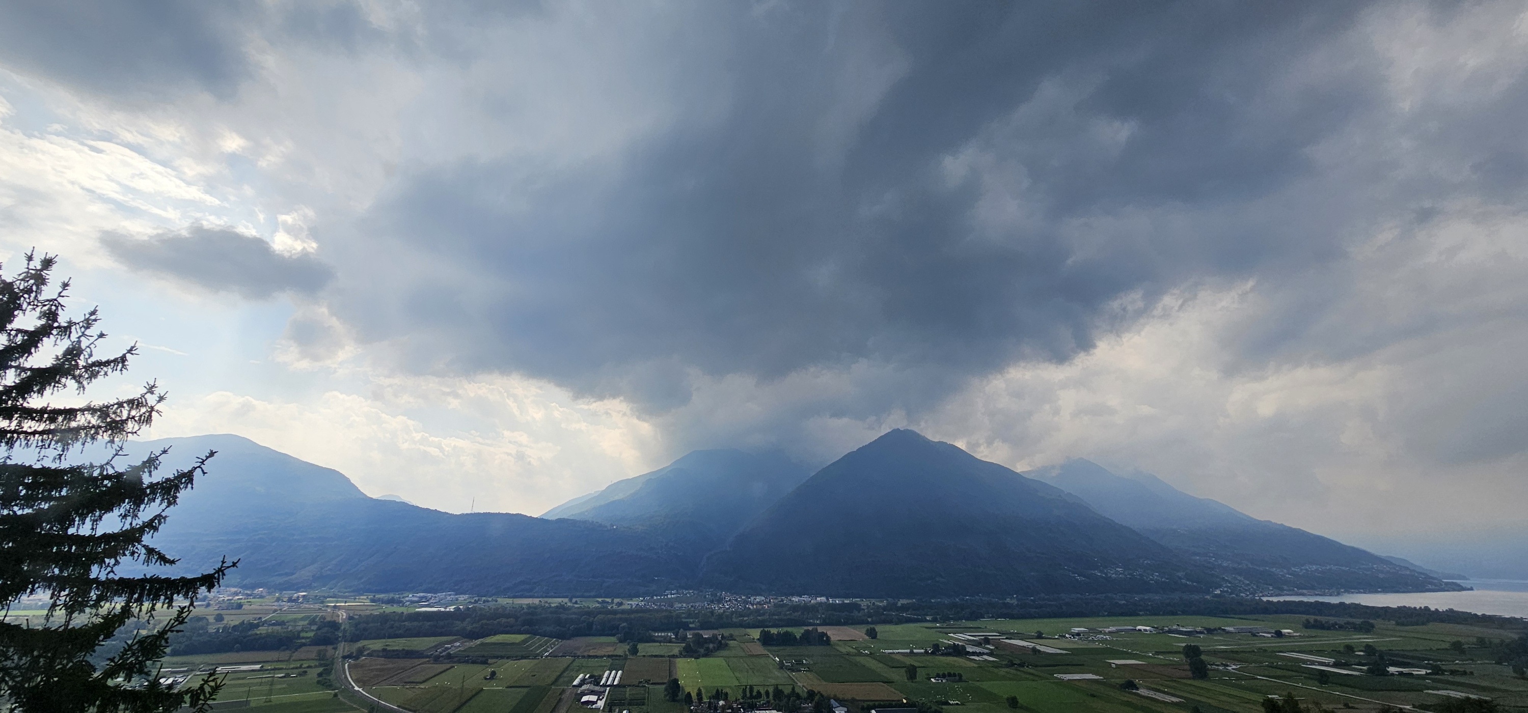 Im Bereich der Kaltfrontpassage kann es am Sonntagabend durchaus nochmals heftig «krachen». In der Atmosphäre ist viel Energie und Feuchtigkeit vorhanden. Die Front sorgt für einen Hebungsantrieb, es bilden sich also Schauer und Gewitter. Diese könnten gebietsweise kräftig ausfallen und mit ruppigen Windböen und Platzregen verbunden sein. Vor allem auf der Alpensüdseite regnet es lokal ergiebig. Gemäss Regula Keller sind im Tessin durchaus 100 Liter Regen pro Quadratmeter in 24 bis 36 Stunden möglich.