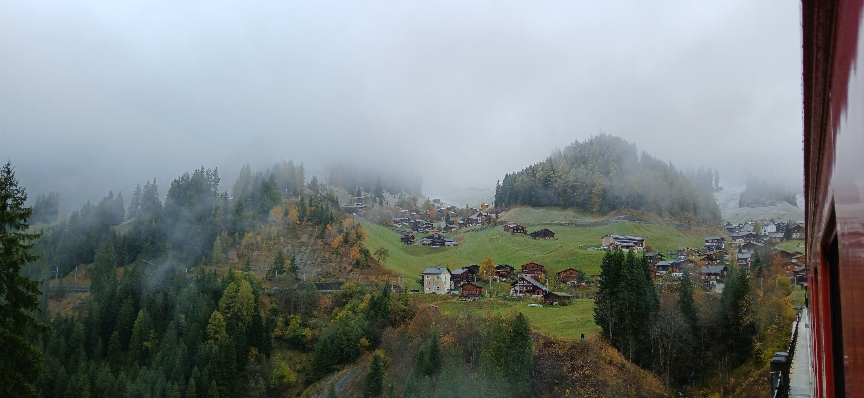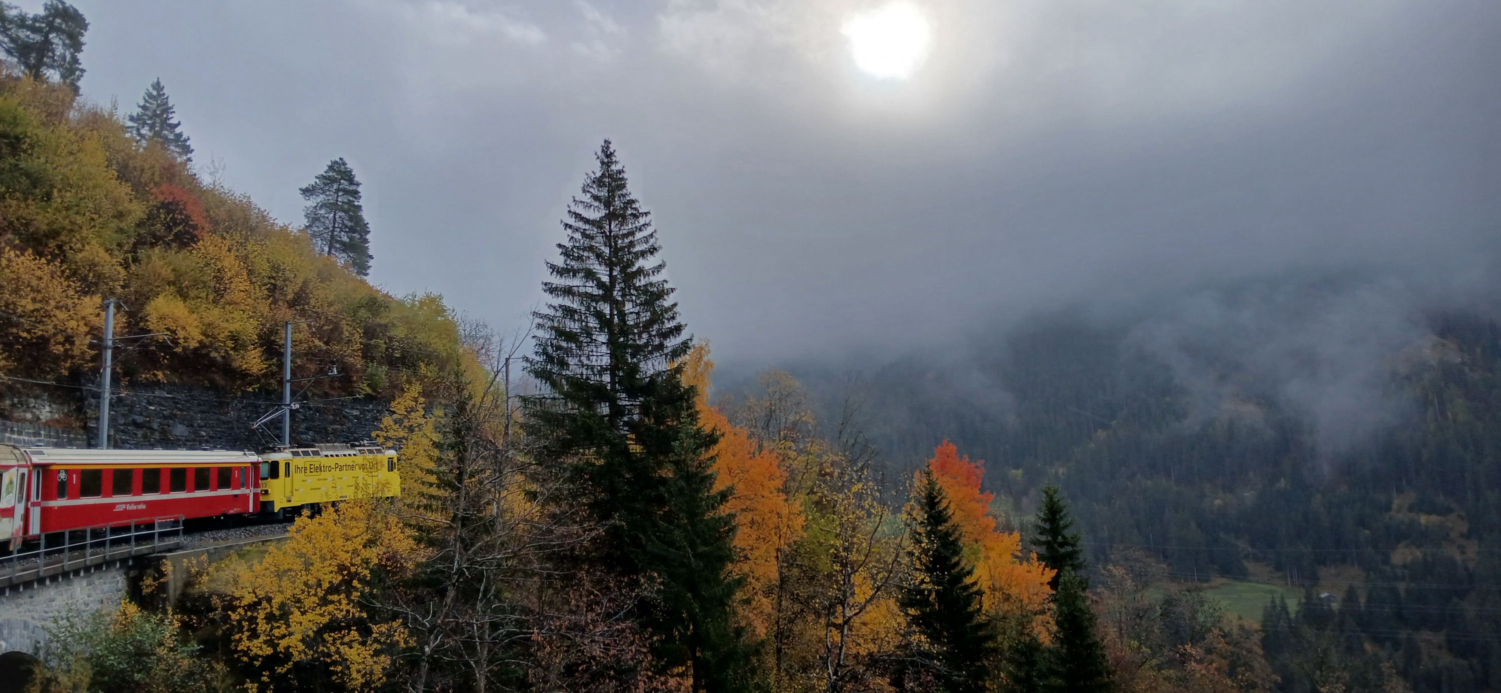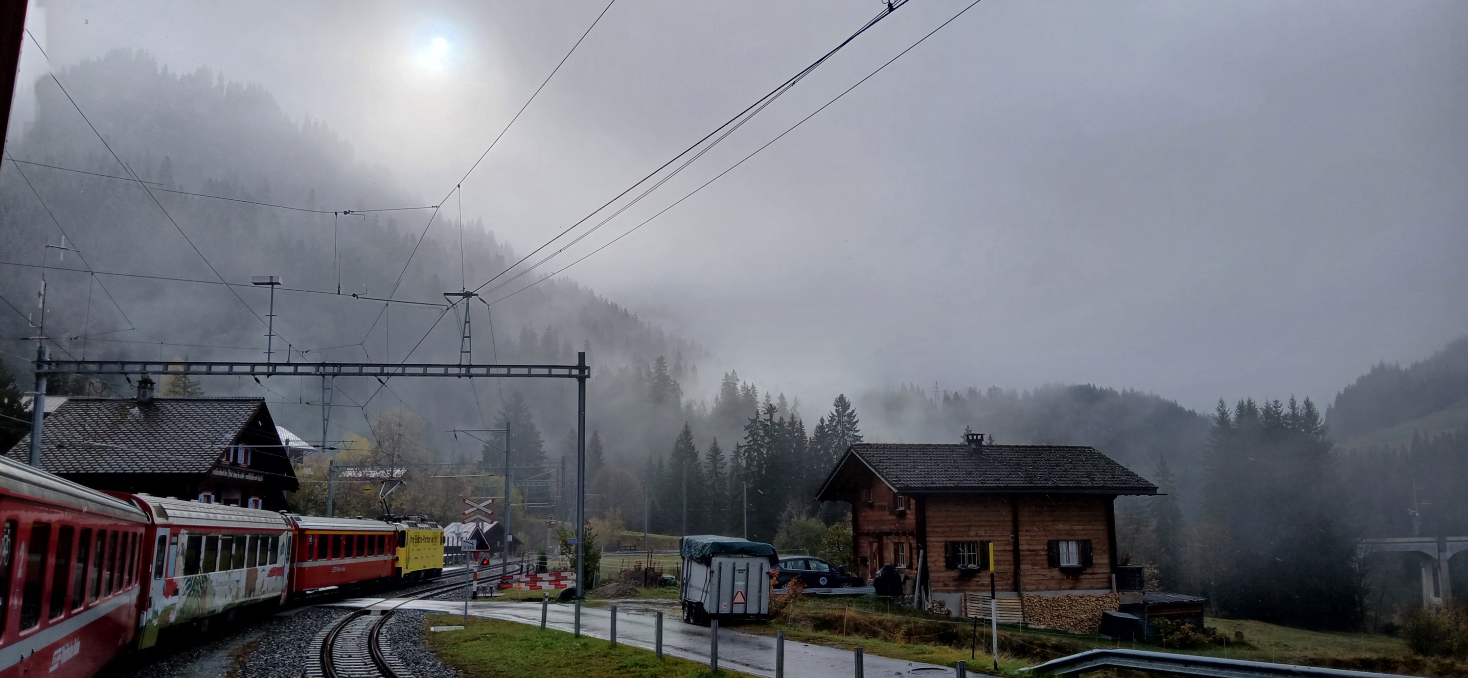 Die Fahrt nach Arosa war begleitet von einer herbstlichen Stimmung, nebelverhangenen Hängen, teils leichtem Niederschlag und einer manchmal durchdrückenden Sonne.