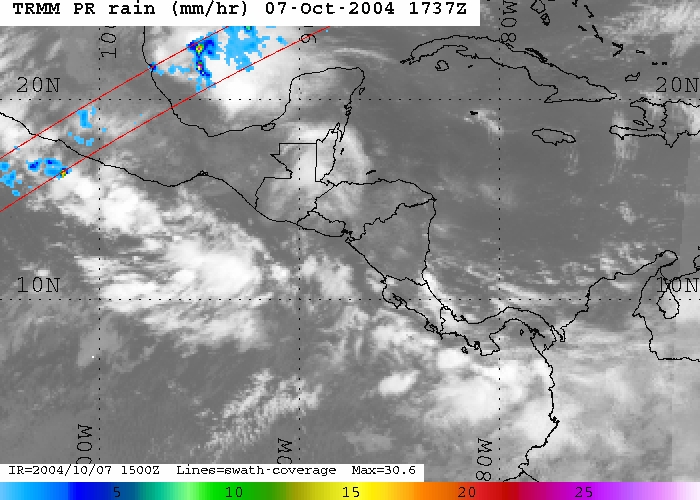 Interessant der Wolkenstreifen östlich von Tampico, welcher auch auf dem Radar