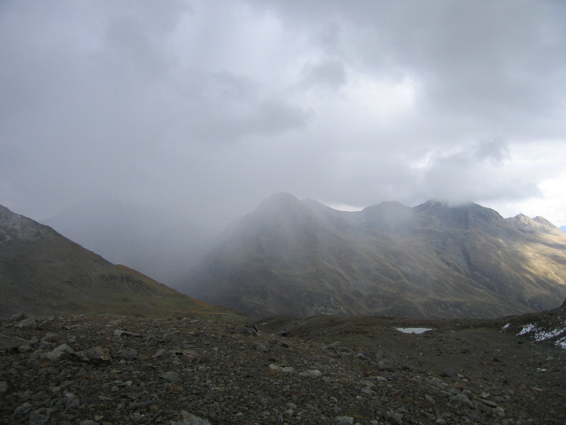 Erstes Gewitter Richtung Muttelhorn-Flesspass (zum Glück wegziehend)