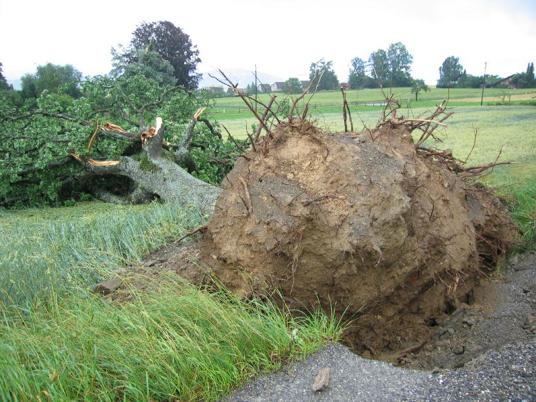 entwurzelter Baum (Buche?... Wenn man nicht vom Blitz erschlagen wird, dann sicher vom Baum)