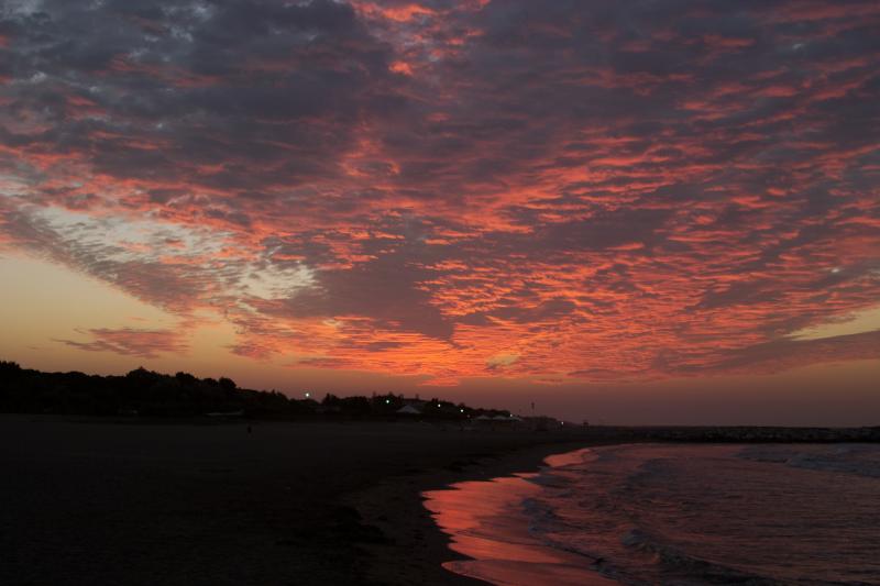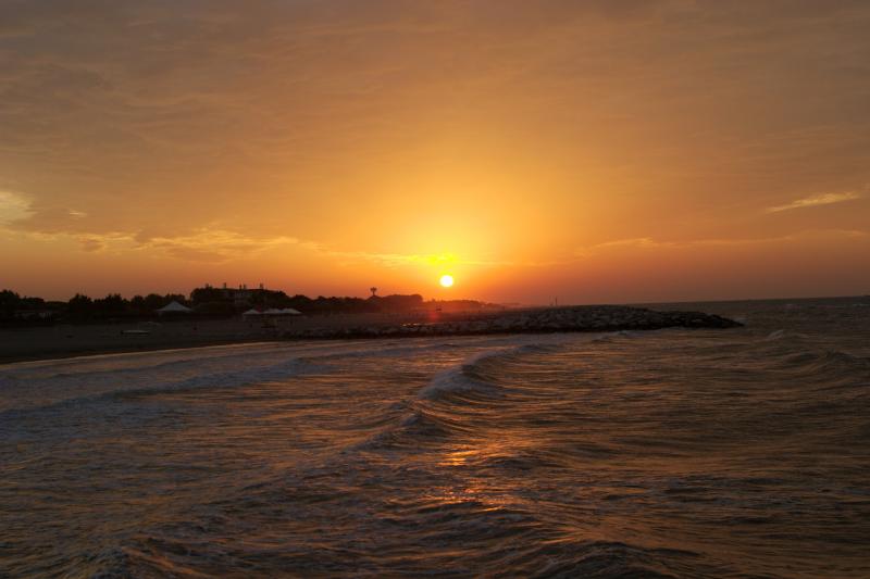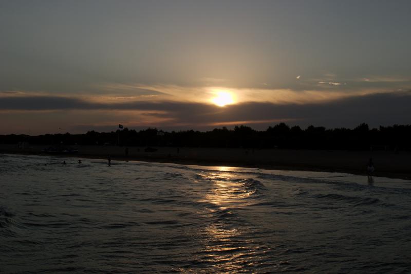 Am 23.7. Sonnenuntergang beim Leuchtturm von Jesolo