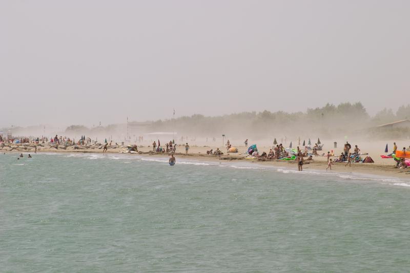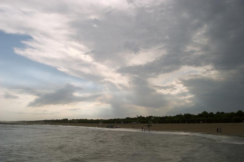 Schlussendlich bildete sich gestern am 30.7. ein Sandsturm am Strand. Ich schaute immer wieder die Prognosen von Meteocentrale.ch für den Raum Venedig an. Die Prognose hatte für den Morgen Regen und etwas stärkeren Wind angesagt.