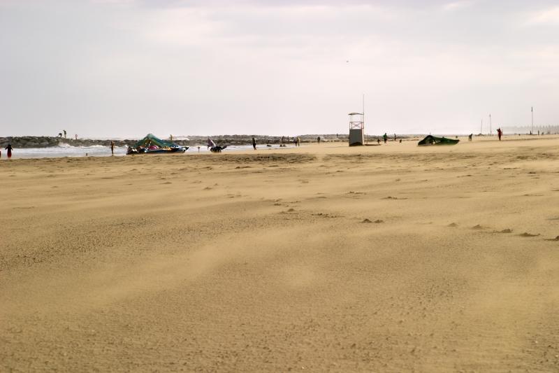 Der Wind bewegte sich genau entlang des Strandes so, dass relativ viel Sand aufgeblasen wurde.