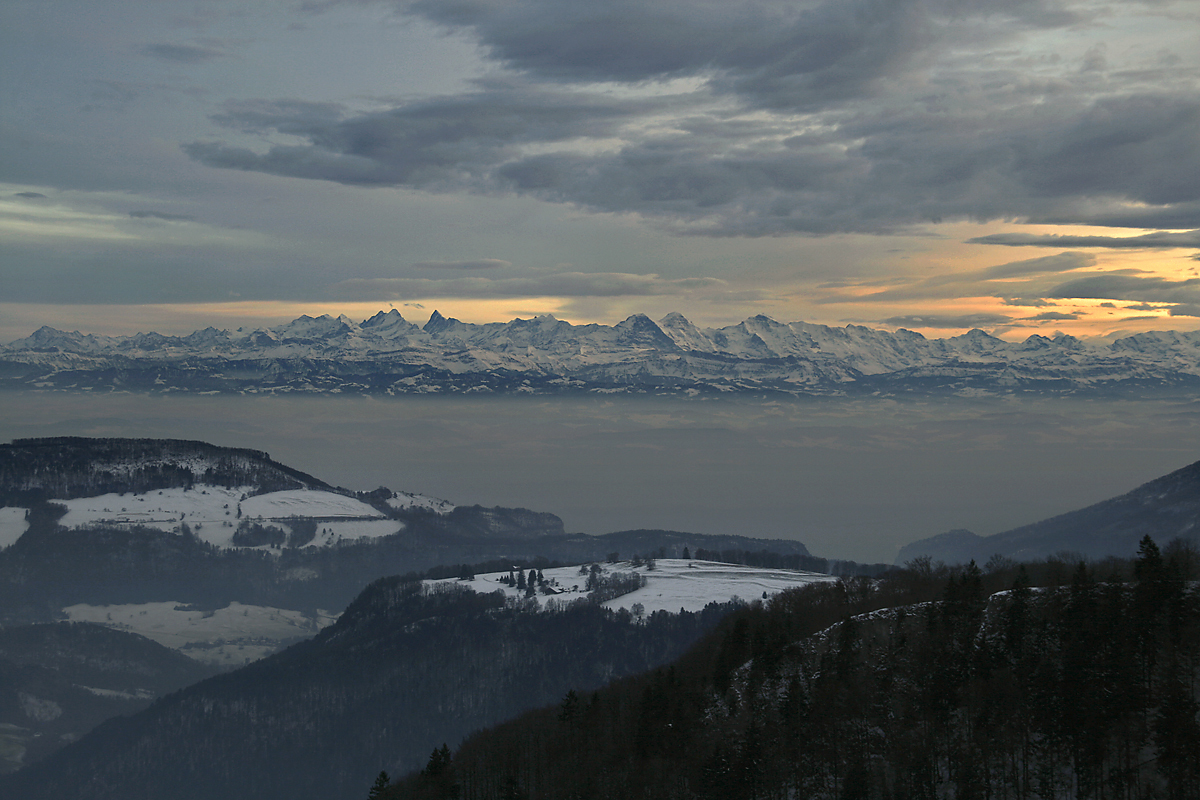 Markante Inversion im Mittelland in etwa 800m Höhe.