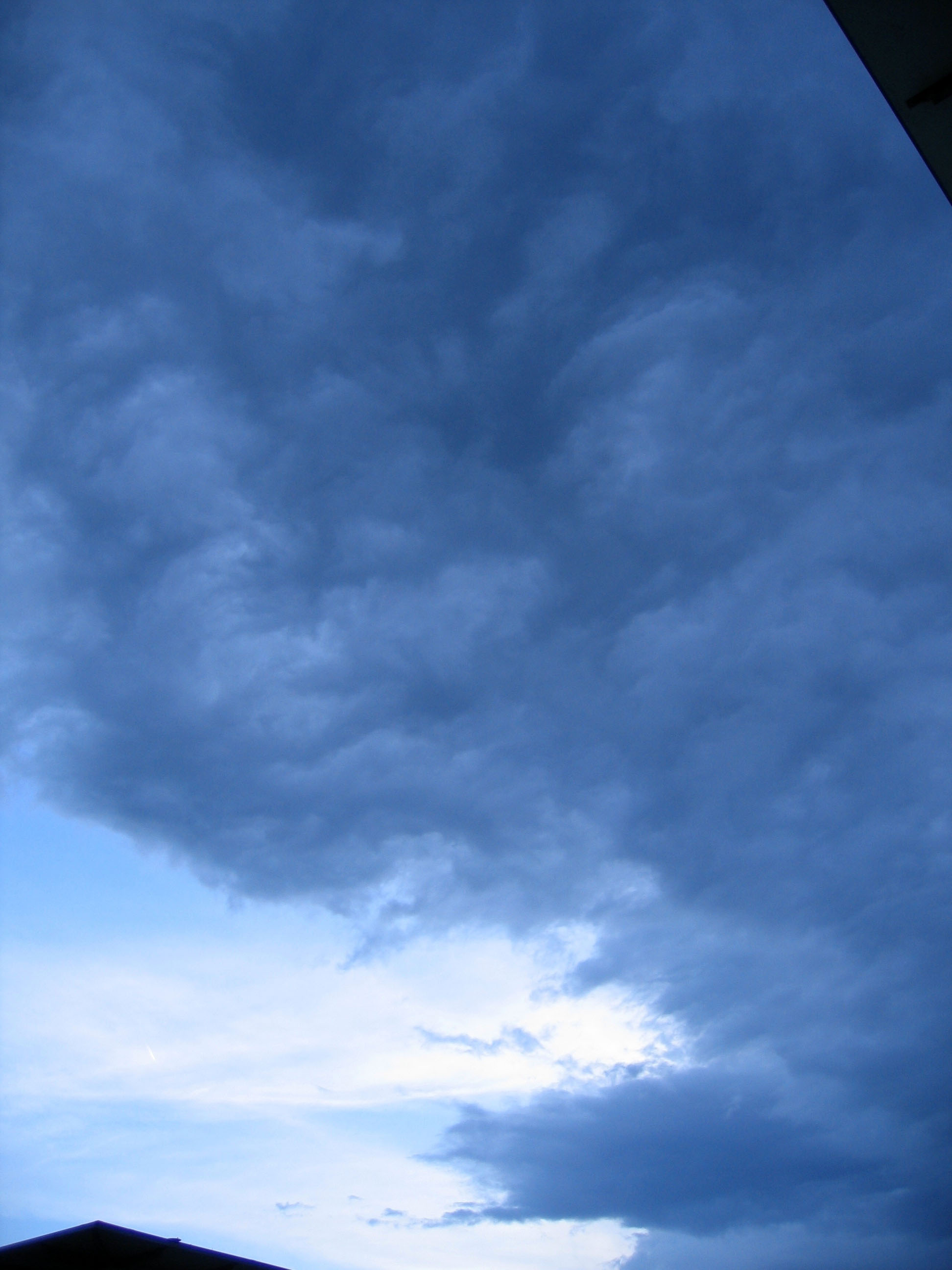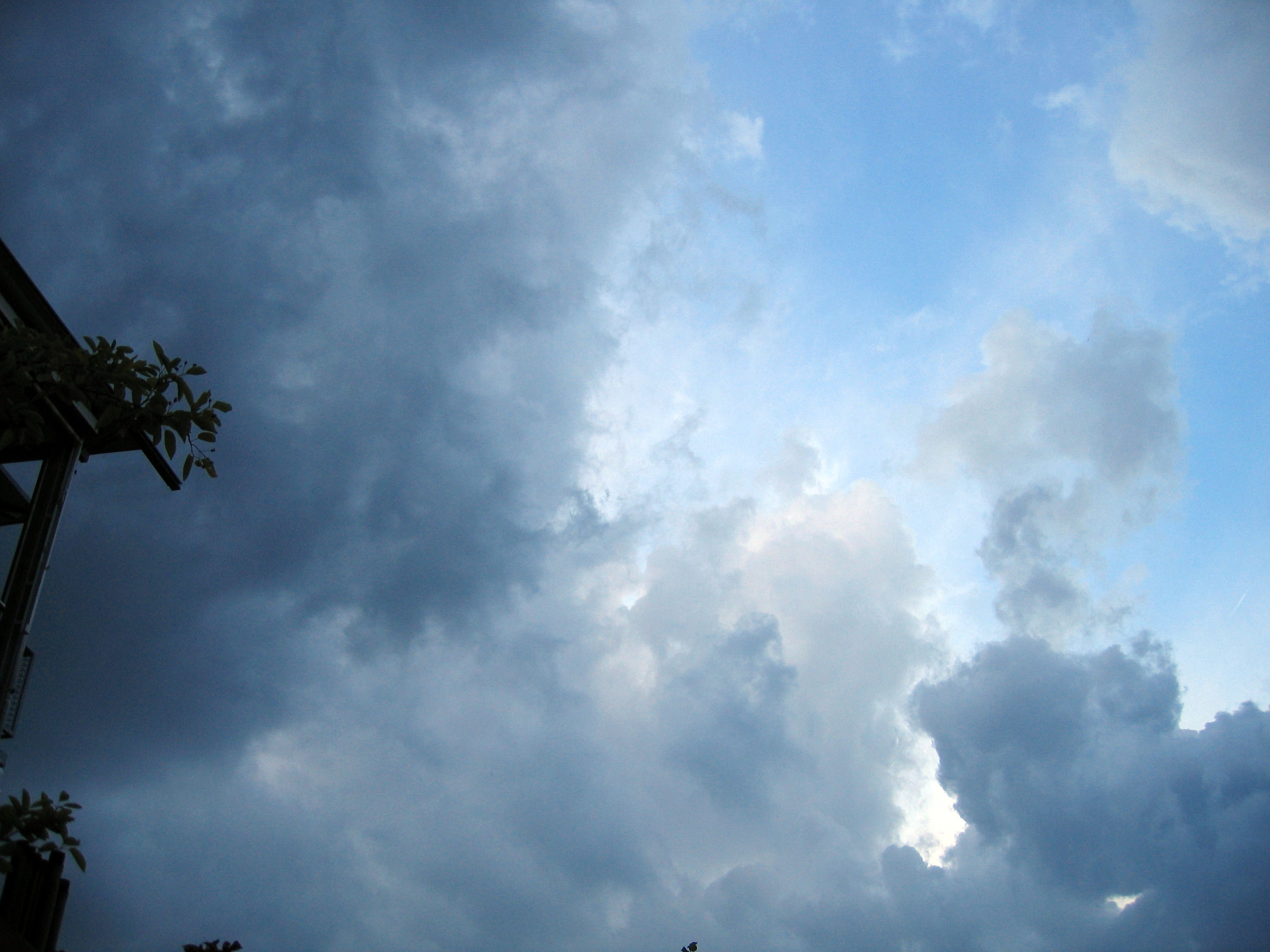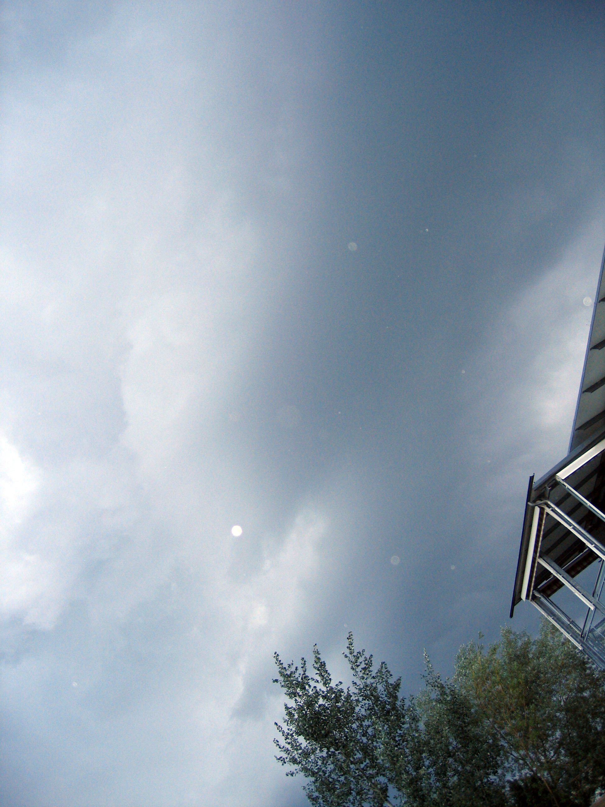 Blick Richtung Südost. Der Blaue Himmel täuschte über die wahren Absichten dieses Gewitterwesens hinweg. Es trat seinen Weg erst an und übte seine Gewalt in ersten zaghaften Schritten über Tinus Pizzaschachteln...