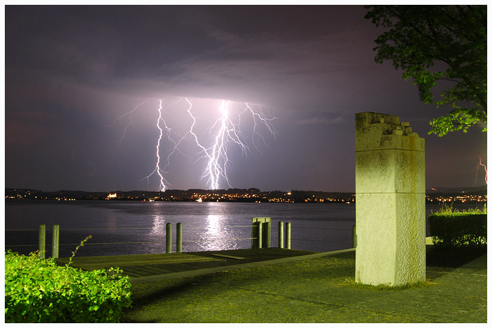 War mit meiner Frau am Südhang des Hohenklingen ob Stein am Rhein und wir haben von dort ca. Richtung Süden hinter dem Seerücken heftige, wunderschöne CG-Blitze beobachten können. Ein echtes Spektakel. Die "Kracher" kamen nicht nicht näher als ca. 8 km heran, also alle hinter dem Seerücken von unserer Sicht aus. Ich dachte nur, dass ich lieber nicht direkt da sein wollte, wo die Dinger einschlugen :( Teilweise mit 20 km Entfernung haben die Dinger noch kräftig gerummst :O