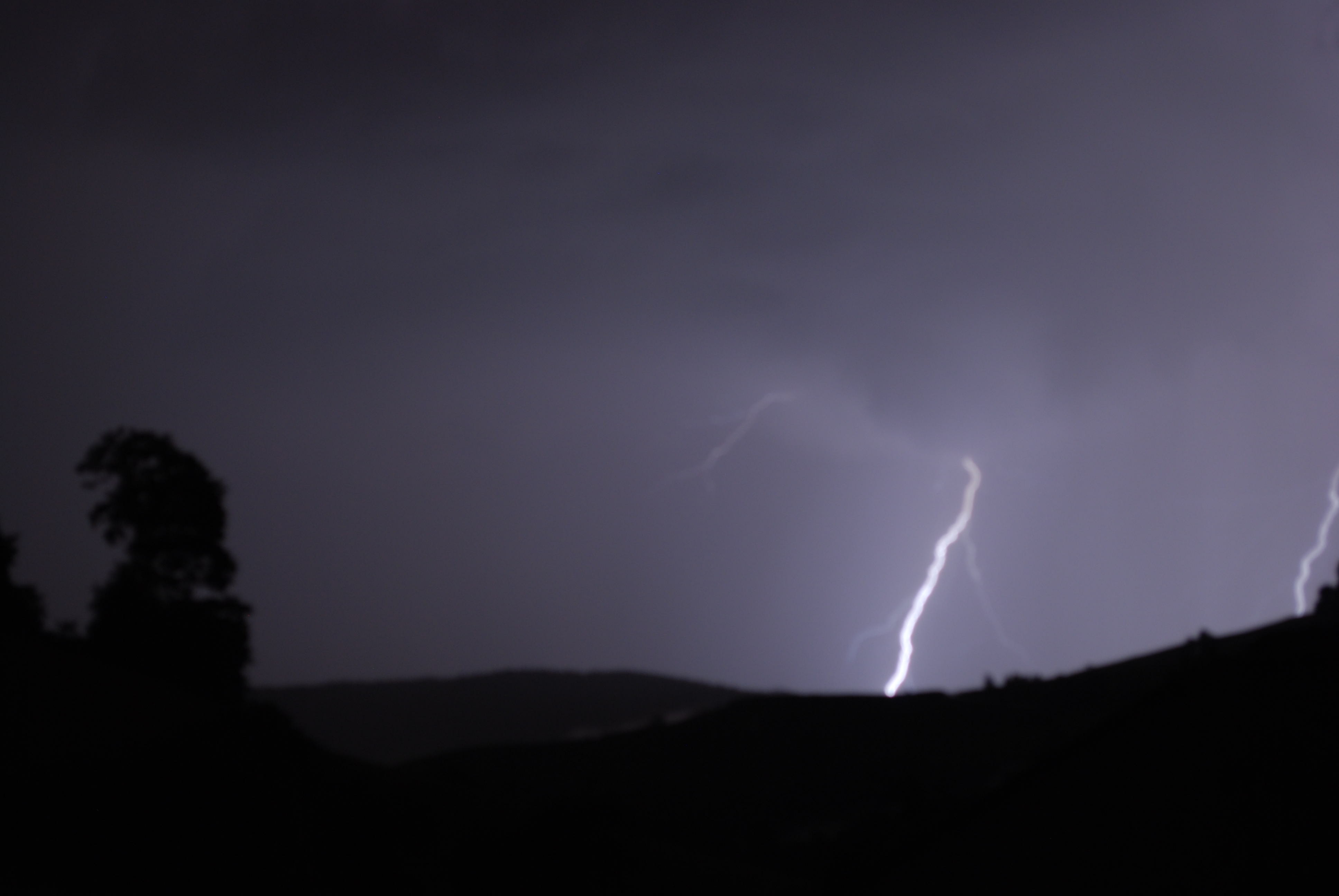 Hier hat sich das "Fröntchen" doch noch bemerkbar gemacht: Soeben sind zwei mehr oder weniger Blitzaktive Zellen durchgezogen. Eine direkt über uns, eine etwas weiter nördlich. Was doch die 13,9°C noch zustande gebracht haben :-D .