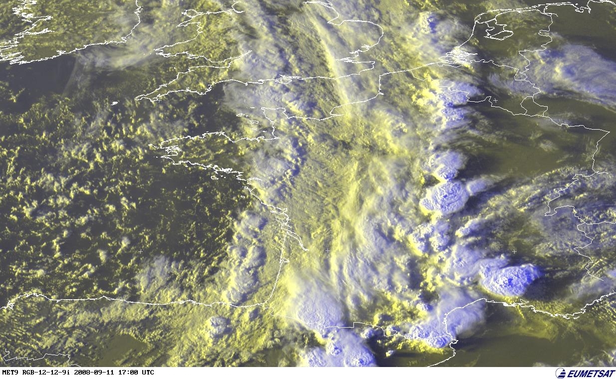 Bild 06: Dann in Nordostfrankreich eine präfrontale Entwicklung. Innert kurzer Zeit entstand eine äusserst blitzaktive Zelle (kleiner weisser Schirm)..........