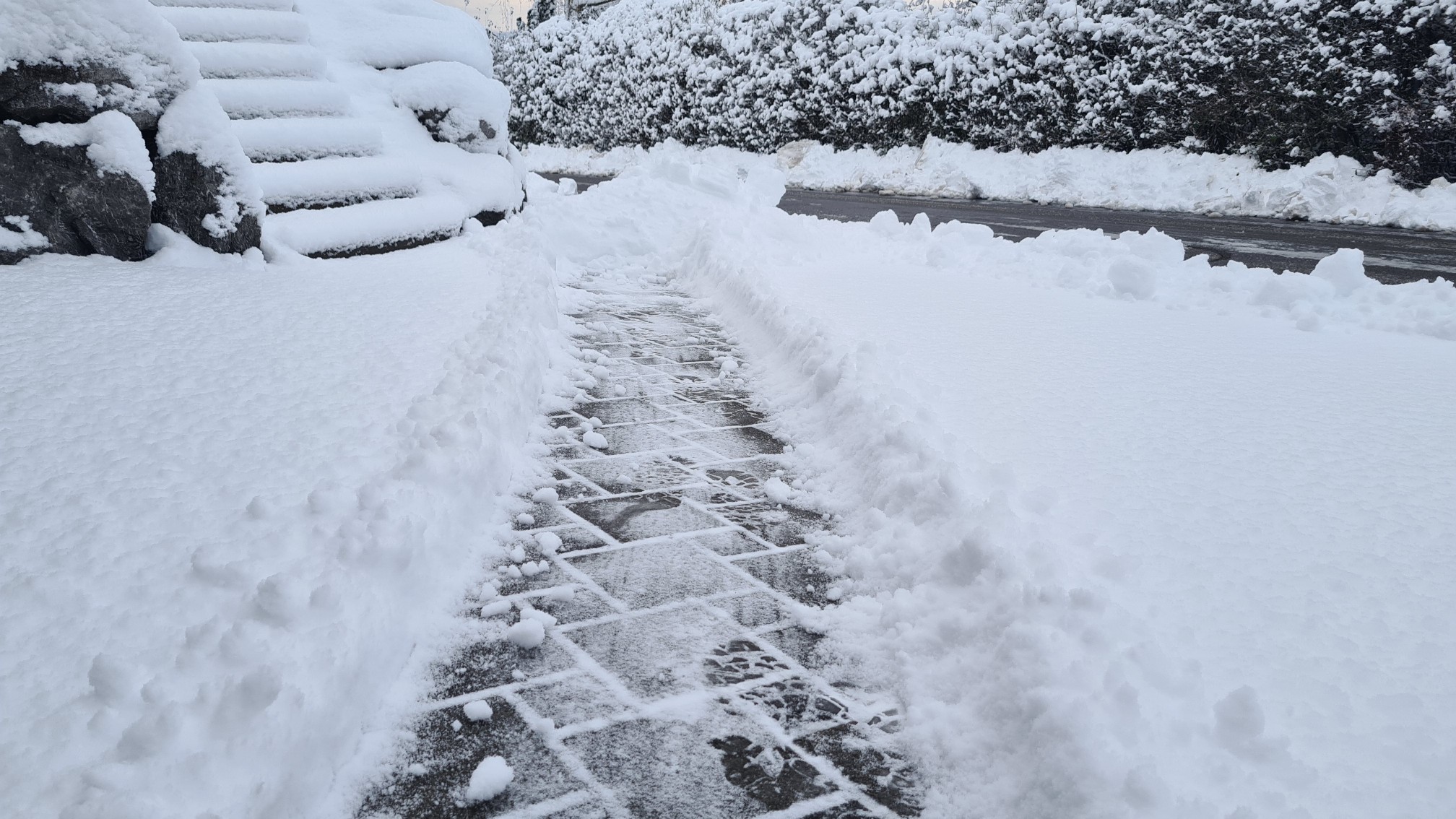 Gestern Abend noch 20 cm höher, nach dem nächtlichen Tauwetter nun kompakter Matsch.
