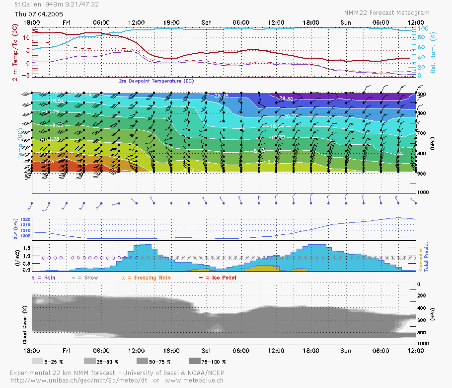 bei SFDRS sprechen sie für den Freitag, 08.04.2005 von Schneeschauern bis 800 Meter hinunter.