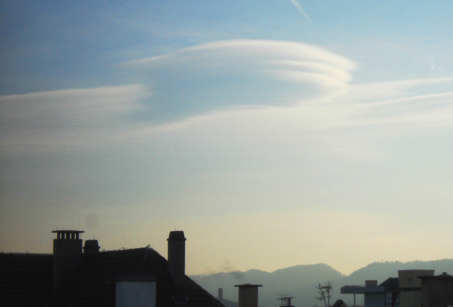 Die Lenti befand sich leicht östlich von Riggisberg: ich würde daher meinen (bin mir aber auch nicht ganz sicher), dass der Längenberg resp. das Hügelgebiet im Schwarzenburgerland für die Hebung und daher die Entstehung dieser Wolke verantwortlich war. Die Lentis entstehen jeweils nicht direkt über dem Hügel, sondern etwas im Lee davon.
