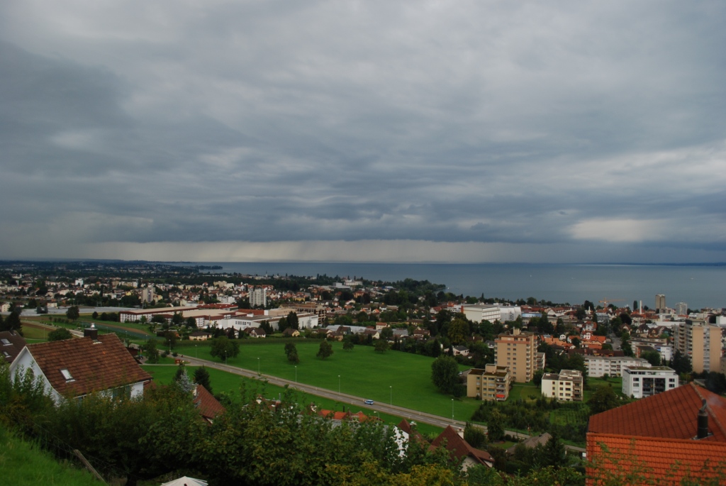 Als wir um ca. 15:30 am Rorschacherberg angekommen waren, entwickelte sich bereits mehr oder weniger bewegtes Konvektionsgewölk. Allerdings wurde dieses bald mal über den Wee hinweggeweht. Nach einer ruhigeren Phase zog die Schauerlinie heran: