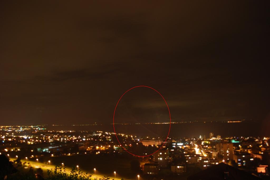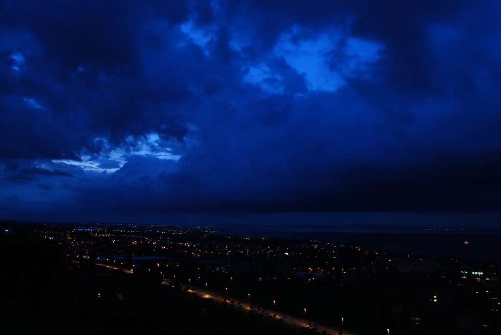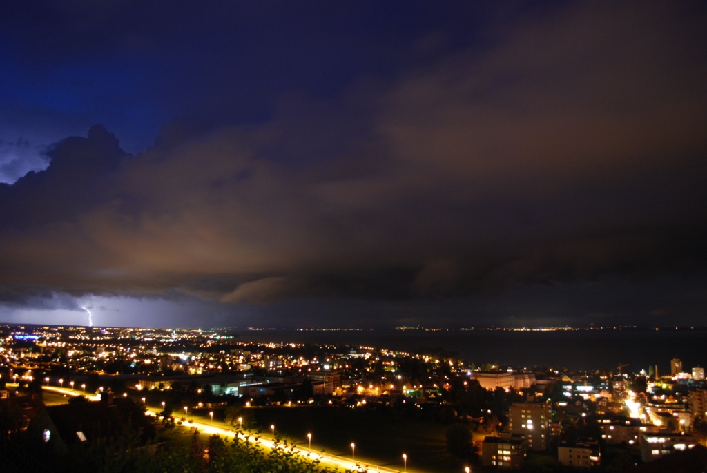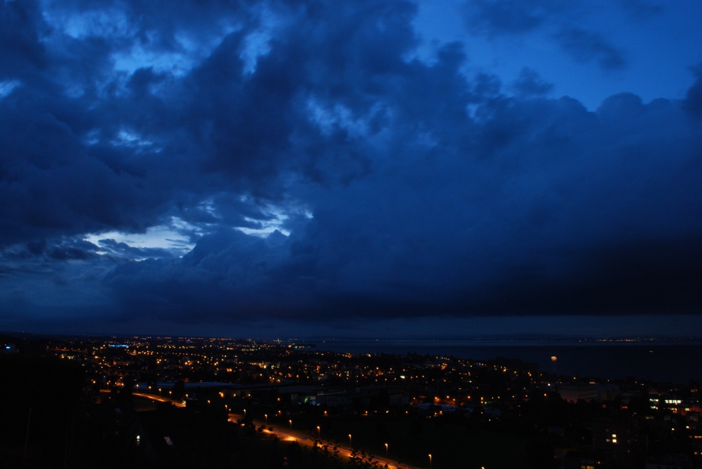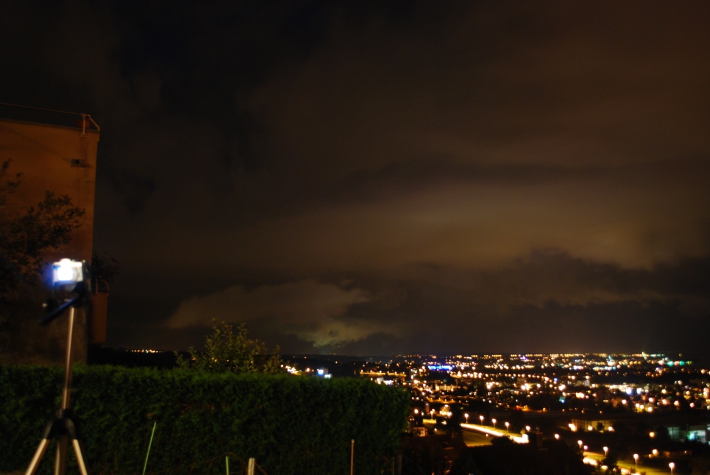 Da es nun wirklich dunkel geworden war, musste eine allfällige Wasserhose mit langer Belichtungszeit und geöffneter Blende gesucht werden (von Auge sah man so gut wie nichts mehr):