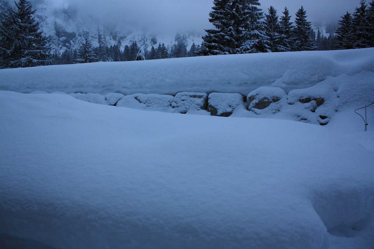 Achja und: Am Freitag bei der Winterwanderung in der Umgebung habe ich nicht mal weit vom Dorf 85cm Schnee messen können, 14cm mehr als da wo ich mess :mrgreen:. Dort wo es halt geschützt ist. An meiner eigentlichen Messstelle hatte es heute 74cm. Natürlich da wo nicht Schnee hingeschaufelt wird. An solchen Stellen hats bestimmt 1 Meter. Z.B. bei der Zufahrt zum Haus.