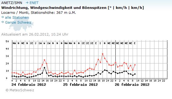 Windwerte der MeteoSchweiz-Messstation Locarno / Monti: