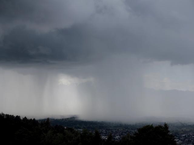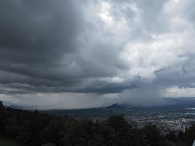 Hier noch zwei Bilder einer Schauerzelle über dem Rheintal, um 13.15 Uhr vom Pfänder aus aufgenommen.