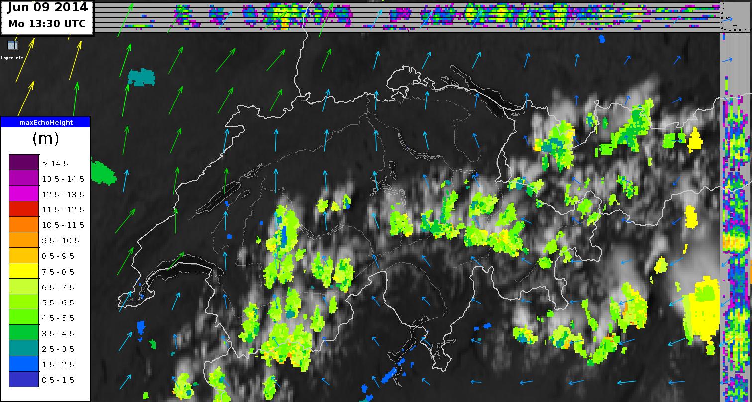 die übrigen kleinen Zellchen haben das max Echo auf 5-7 km: