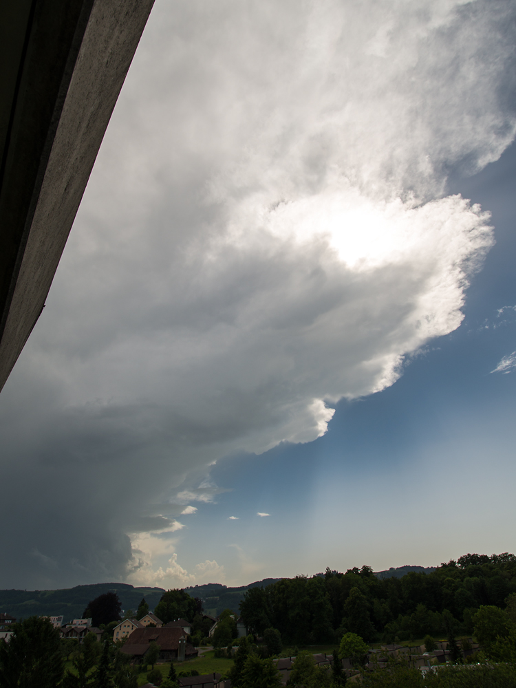 Im der Region Aarau ist die Sonne nun auch bereits vom Cirrenschirm der Zelle abgedeckt.