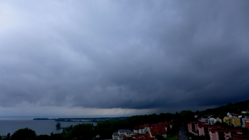 Deutliche Quellwolkenbildung mit markanter Basis. Jedoch reichte es nicht für die Bildung von Wasserhosen, da der Temperaturunterschied (Wasser 15 Grad, Luft 12 Grad) zu klein war und zudem ein mässiger Bodenwind wehte.