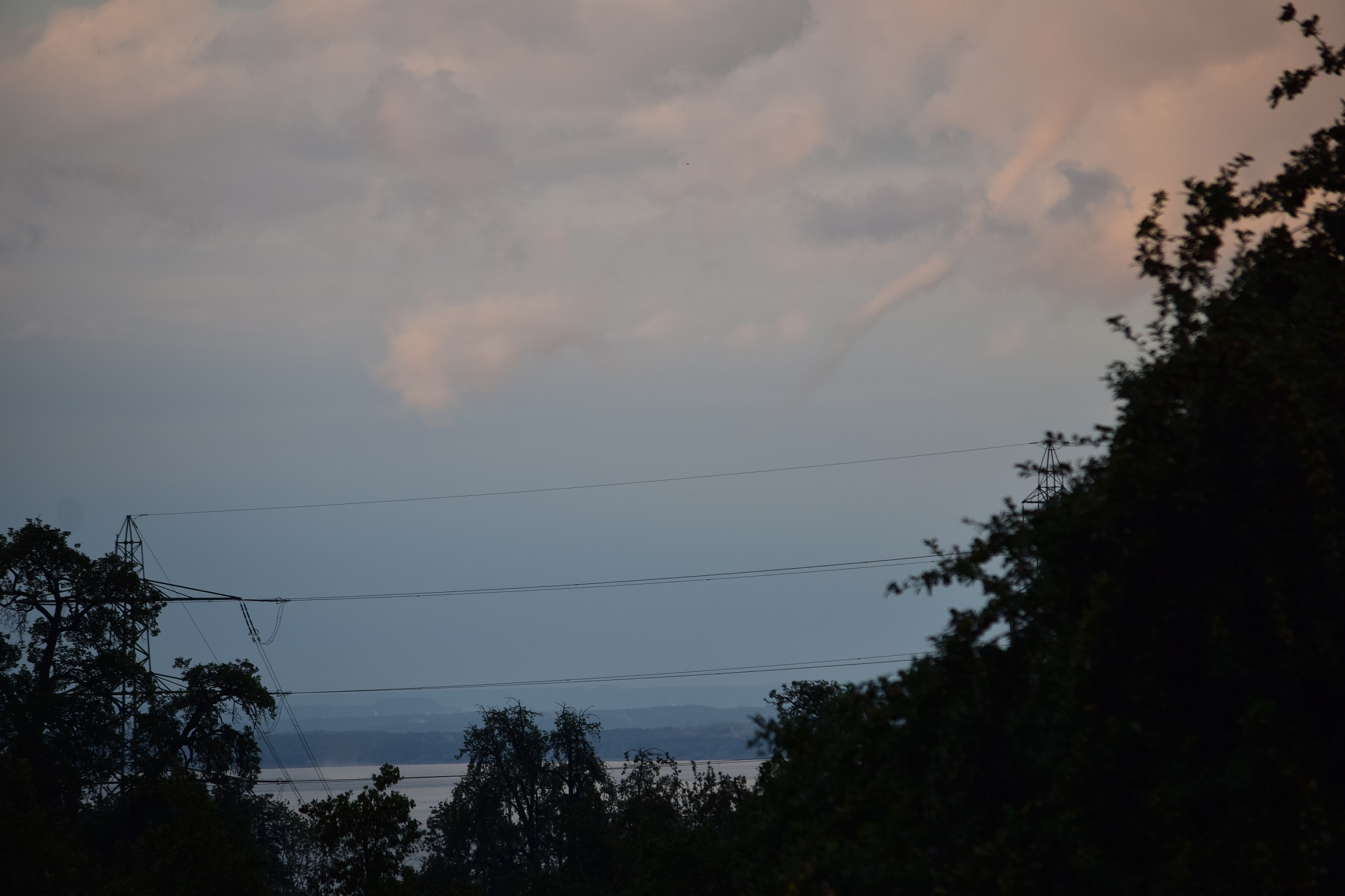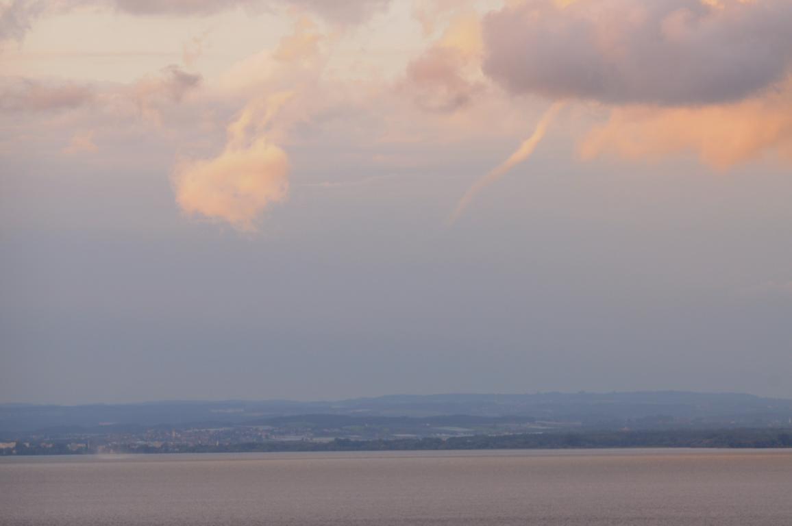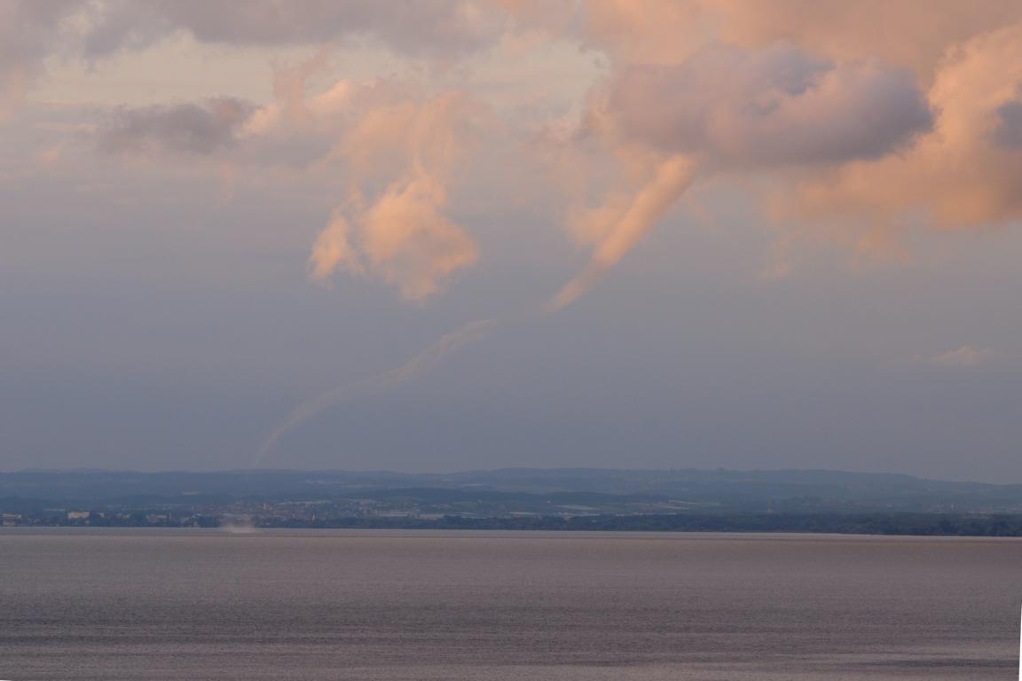 Von 20.03 h bis 20.05 h entstand über dem Bodensee eine Wasserhose im schönsten Abendlicht