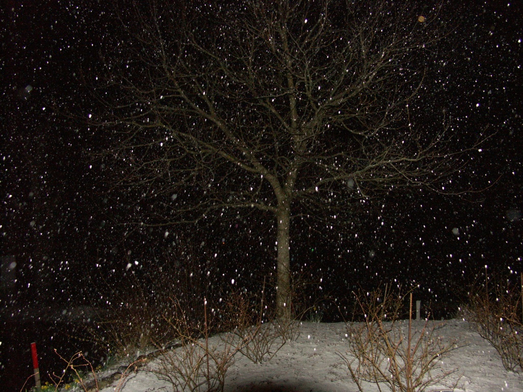 Ich war vor 10min draussen und habe enige Bildchen gemacht. Hier sind zwei vom mässig - starken Schneefall: