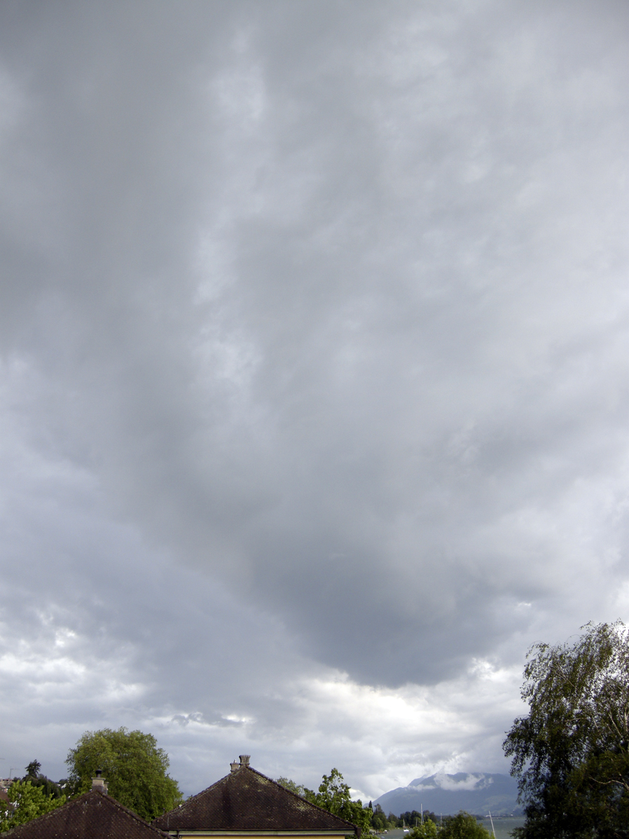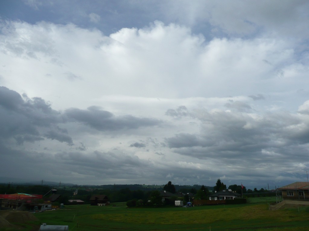 Die Temperatur ist markant abgesunken, aktuell zeigt mein Sensor kühle +16.2°C an. Wenigstens hat es aufgehellt und ich habe so (fast) freie Sicht auf die Tops der Zürcher Gewitterzellen!