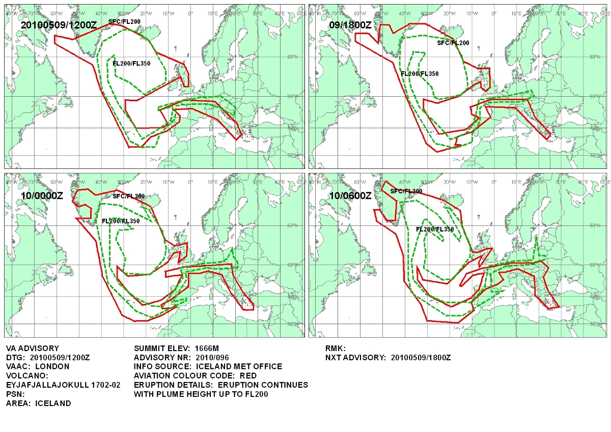 Die Folge: Am Freitag wurden wieder einige Flughäfen in Irland vorübergehend geschlossen. Im Westen des Landes konnten mehrere Stunden lang keine Maschinen starten oder landen. Erst am Vormittag beschloss die Flugsicherung, die Sperrung wieder aufzuheben, da die Asche weit genug von der Küste entfernt sei. Bei einem Wechsel der Windrichtung könne sich die Situation aber ändern.