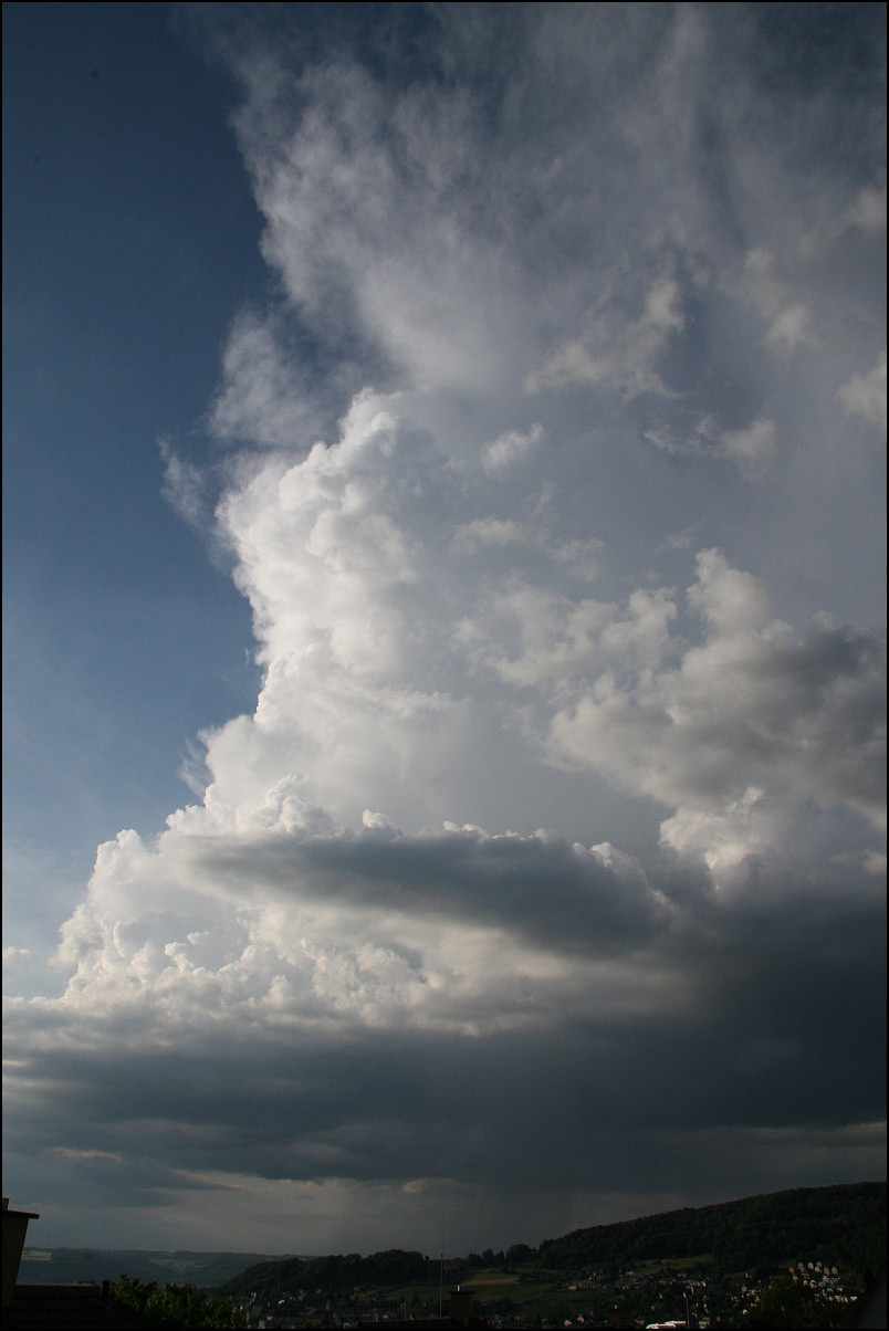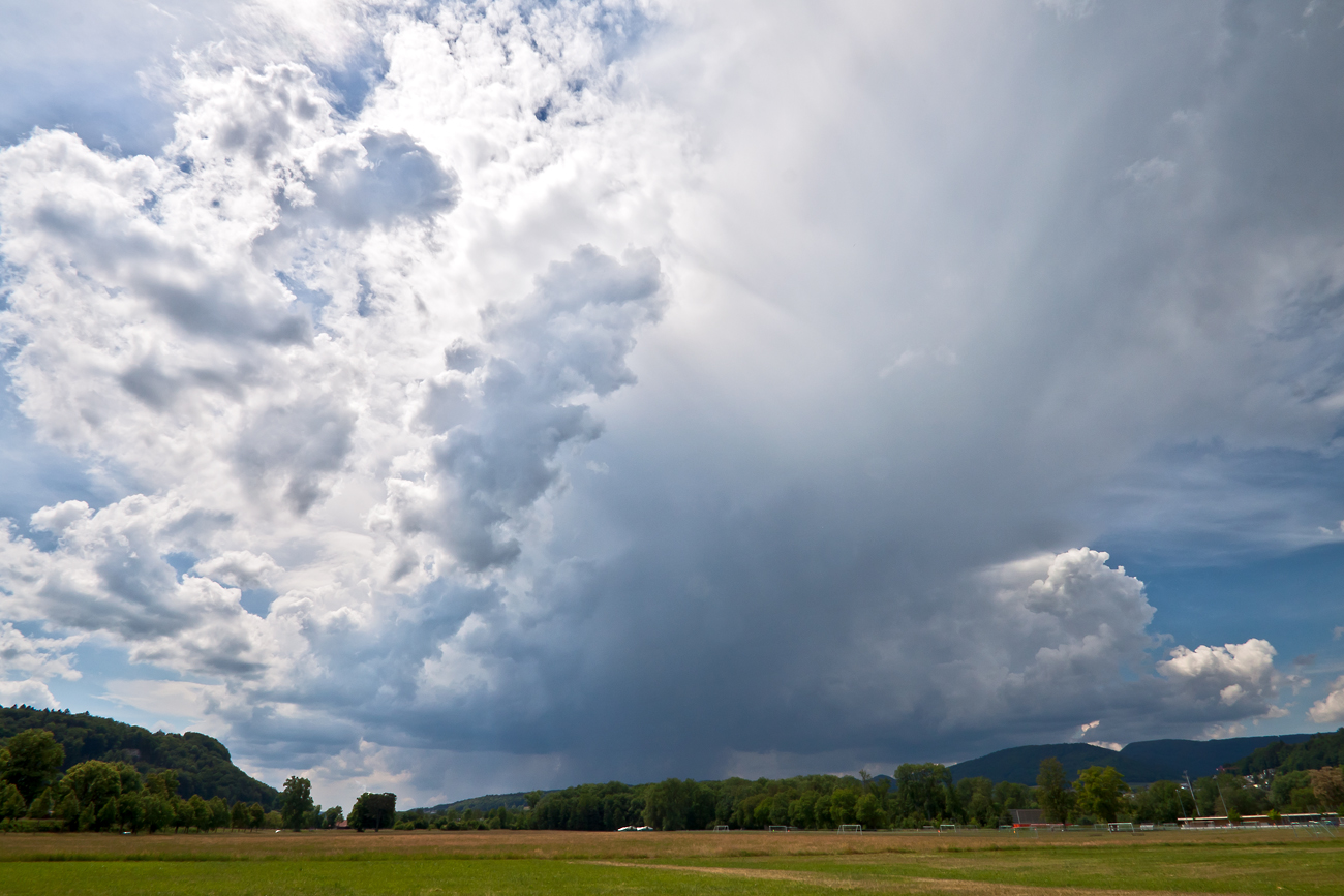 Am frühen Nachmittag konnte ich sozusagen ein Balkon-Chasing machen. gegen 14.00 Uhr entwickelte sich bei Olten eine schöne Zelle. Nach 5 Minuten Fussmarsch, hatte ich mein "Spotterplatz" erreicht. Die Zelle war in de Höhe recht bescheiden und auch sonst gab es nicht viel Aktion. Einpaar Blitze ca. 6 konnte ich ebenfalls sehen, bald aber war die Zelle schon wieder am zusammenfallen und so konnte ich meine Sachen wieder einpacken.