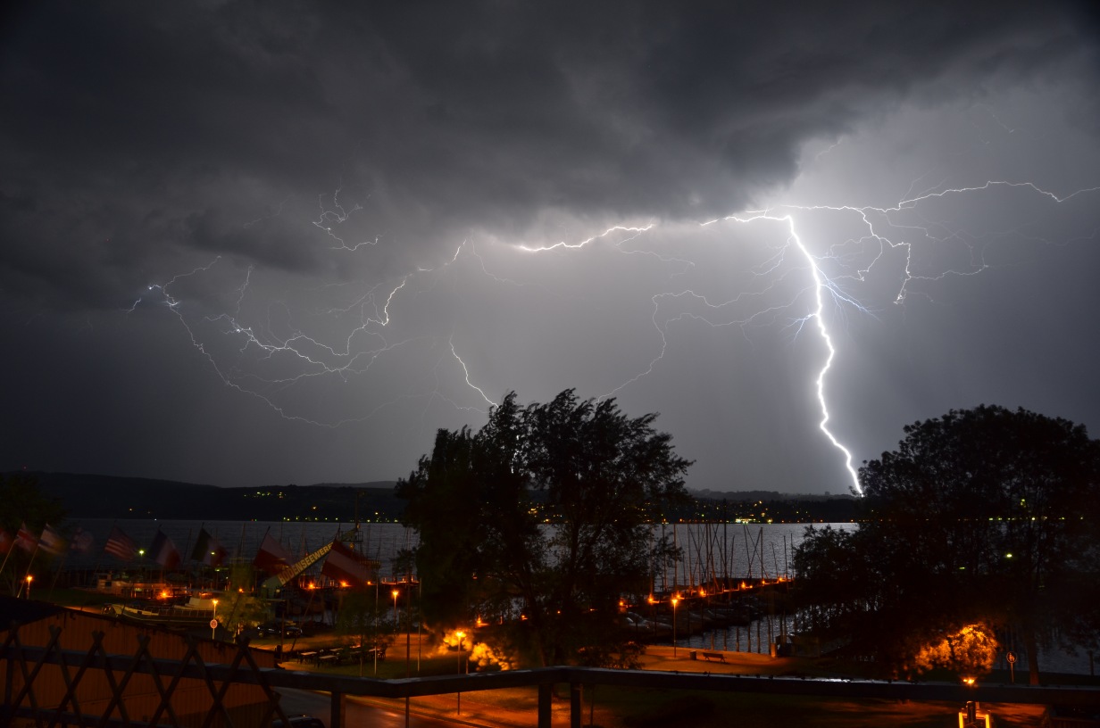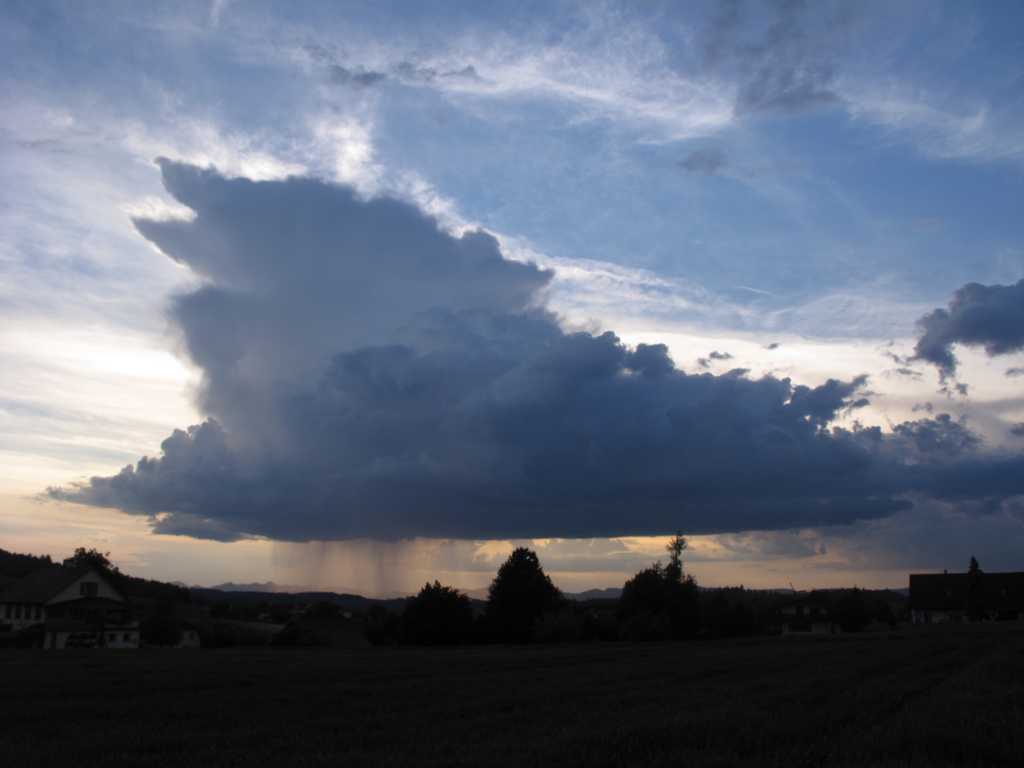 Am Abend war ich dann noch schnell in Bellikon (AG). Von dort gab es eine herrliche Sicht auf die "kleine" Zelle die um 20.30 Uhr nochmals bei Olten hoch ging. Von der Entwicklung her, war es eher bescheiden, als Referenz hatte ich ja einen tollen Blick auf das Gewitter bei Waldshut. Aber aufgrund der Lichtverhältnisse, hatte die "kleine" Zelle auch seinen Reiz. Leider war hier ebenfalls nach nur zwei beobachteten Blitzen, das ganze Schauspiel auch schon wieder vorbei. Die Zelle wurde deutlich Outflowdominant und ich konnte mich auf den Rückweg machen. PS: Die Zelle ganz im Osten sah genial aus, leider zu weit weg für mich!
