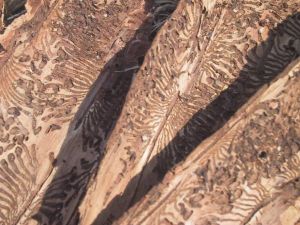 So würde dan die Rinde aussehen nach dem Angriff des Buchdruckers.