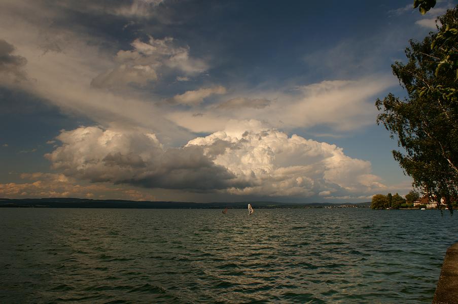 Linda und ich kamen gerade vom Surfen in Steckborn/Berlingen zurück, als es über dem Seerücken zappenduster wurde,