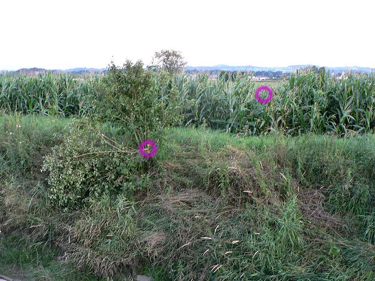 Hier eine Übersichtskarte der Gegend (Kreise markieren aufgefundene Sturmschäden):