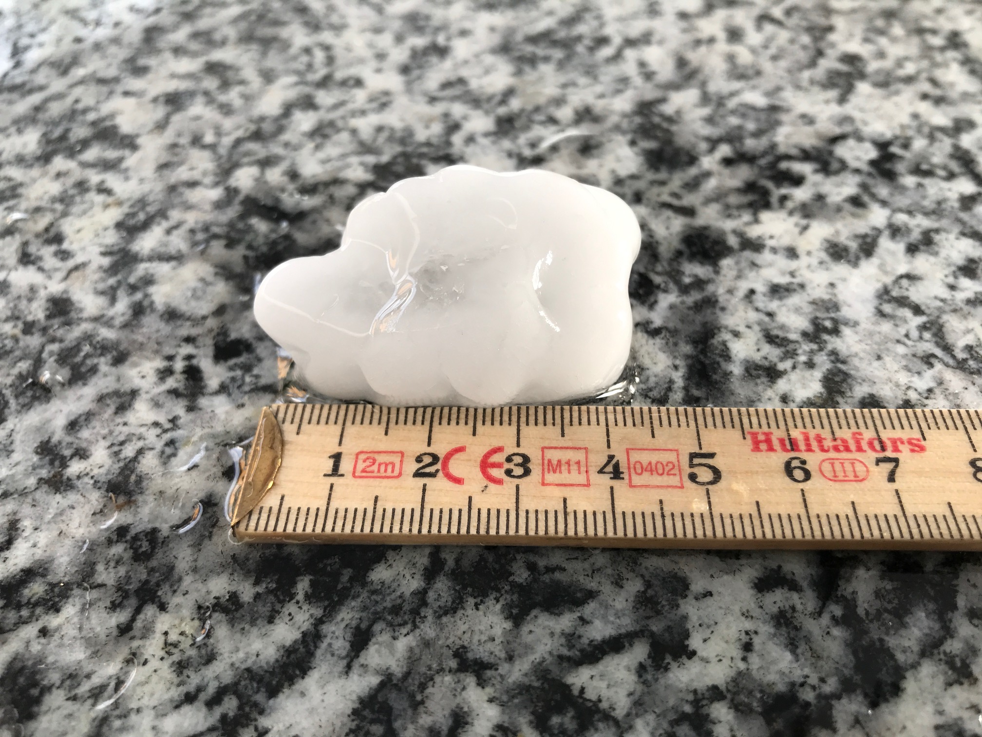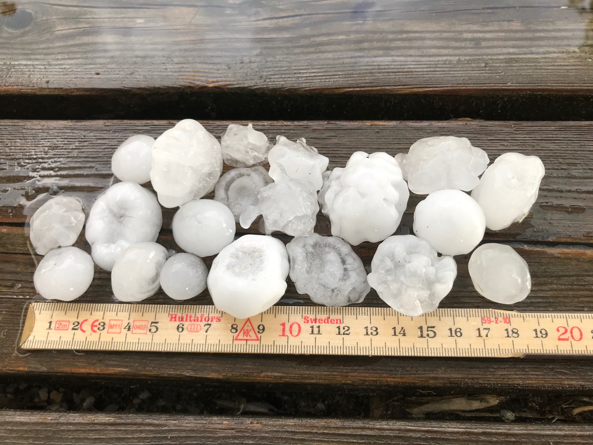 Ab 00:50 Uhr bis 01:50 Uhr gab es innert einer Stunde weitere 24.8 mm Niederschlag infolge diverser Neuentwicklungen im Gewitterkomplex. Um etwa 01:10 Uhr hagelte es sogar unter einer dieser Neuentwicklung (war wie ein Pulsieren der Radarechos Abschwächung und Wiederaufleben). Die Körner müssen doch grösser als Kirschsteine gewesen sein dem Ton nach zu urteilen.
