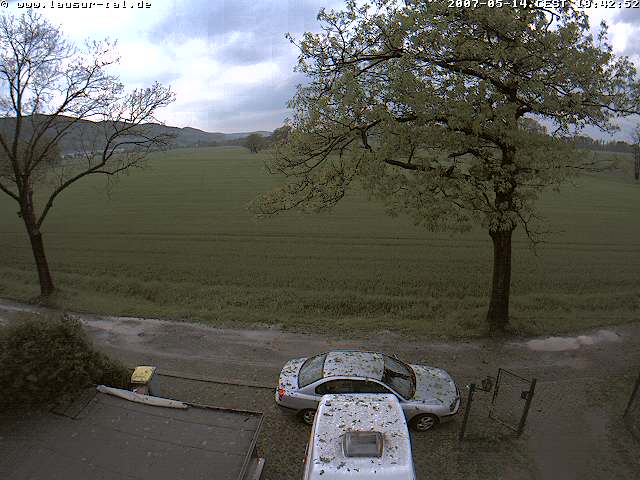 2.) 2,9mm Niederschlag in 3min (maximaler Niederschlag in 3min seit mindestens August 2006!). Das entwpricht mit anderen Worten einer Regenrate von 58mm/h!