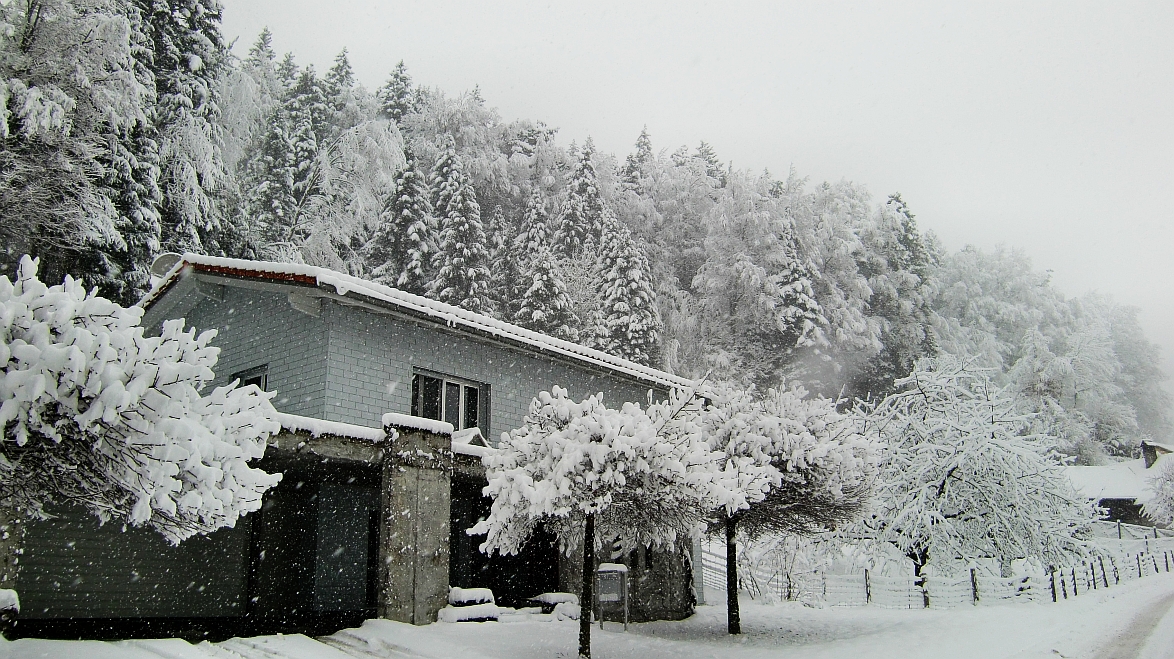 Jetzt bin ich zuhause in Untersiggenthal und hier ist es wieder leicht weiss angezuckert da es wieder stärker schneeit und die Temperatur um fast ein halbes Grad gesunken ist.