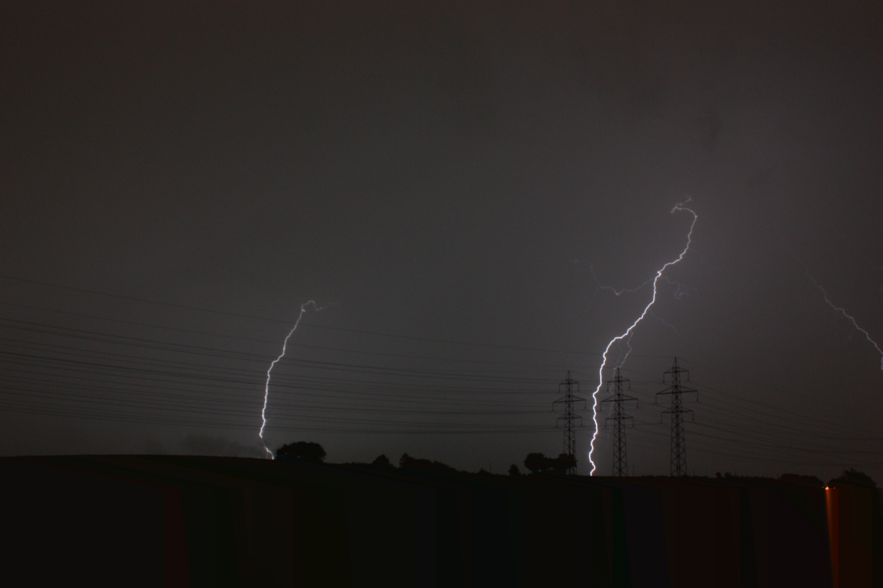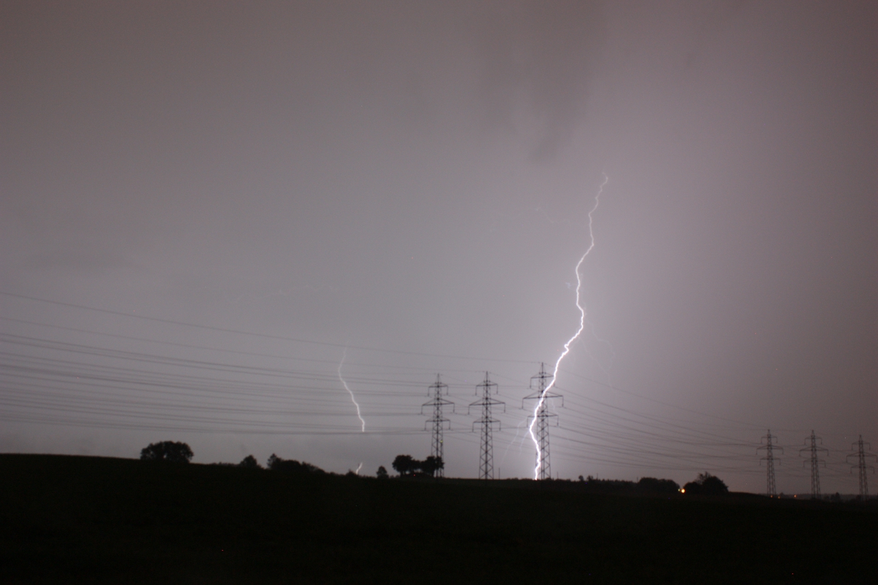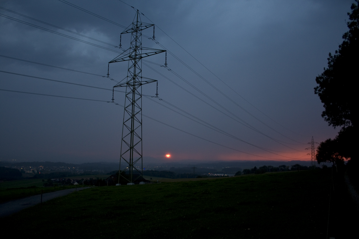 Von wegen Hochspannungsleitungen, ich war am 24.8. in der Nähe von Brütten, um mir das Gewitter anzusehen. Dabei habe ich viele gute Fotos gemacht, vor allem während der Dämmerung :unschuldig: . Etwas später aber gabs am laufenden Band Einschläge in nächster Entfernung (>500m), siehe erstes (unbearbeitetes) Bild. Dabei waren einige mächtige Kracher direkt in den nächstgelegenen Mast, vielleicht 100m entfernt :shock: :warm: , die ich nur mit extremem Bearbeiten sichtbar machen konnte. War echt eindrücklich, das ganze aus dem Auto zu erleben. Einstellungen an der Cam waren die selben.