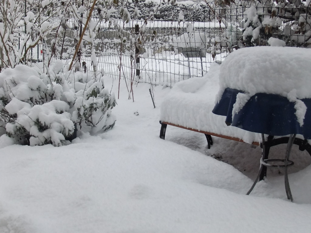 Schneehöhe vor der Front um 10.45 Uhr : 25 cm, nach einer Std. Starkschneefall sind wir im Bereich von 30 cm.