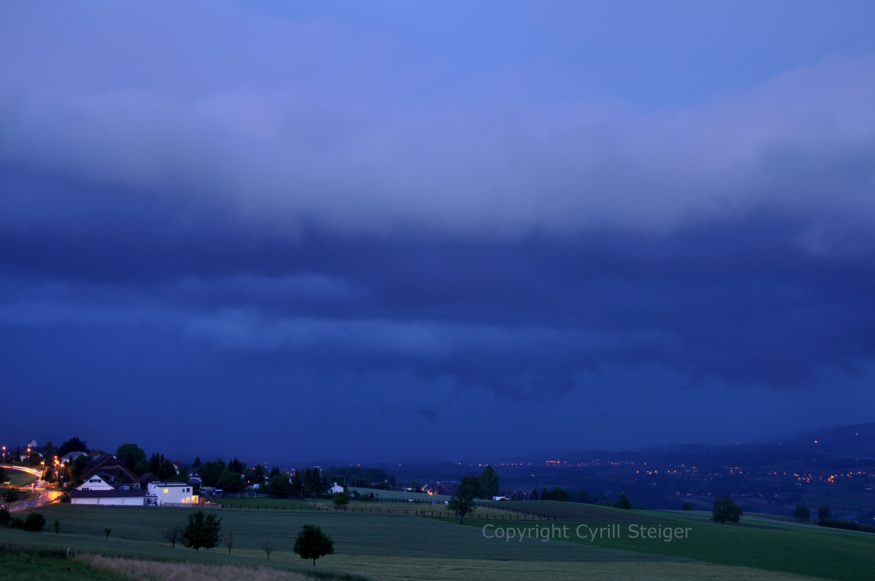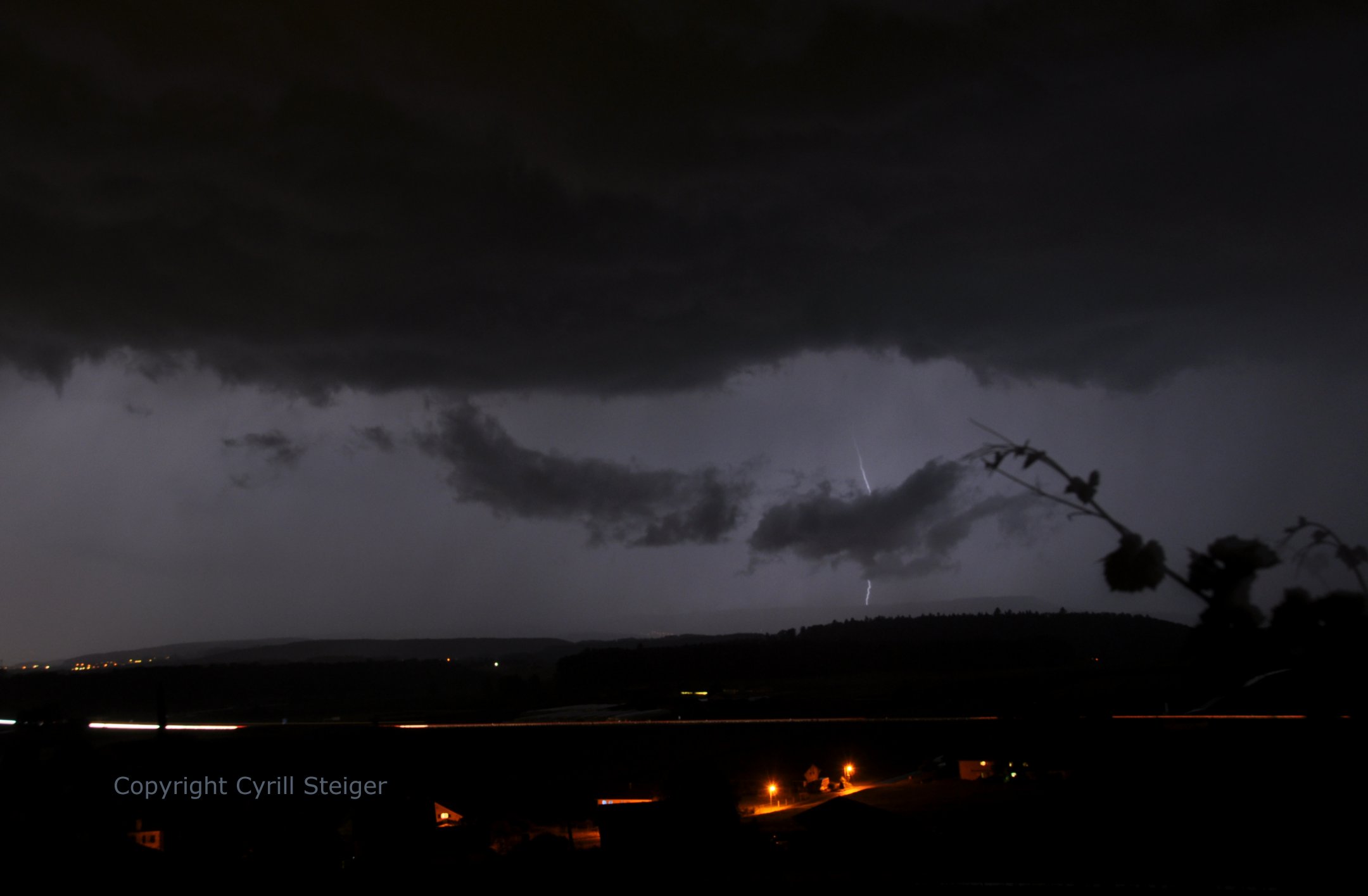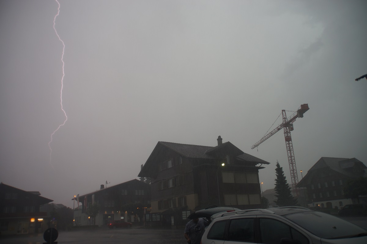 Eindrücklich aber das oft fast pausenlose Wetterleuchten, und dann, nach 22 Uhr, die Sturzflut mit 64 mm Regen in einer Stunde. Gegen Schluss dann ein paar laute Knaller, die Kamera war aber längst wieder eingepackt.