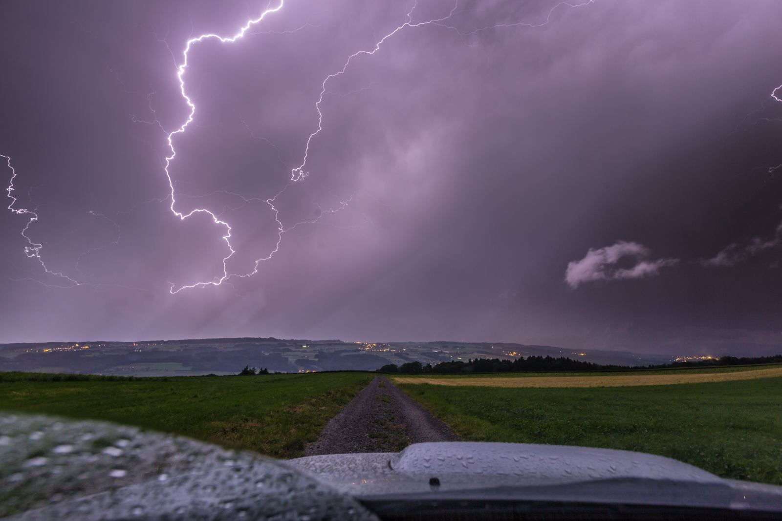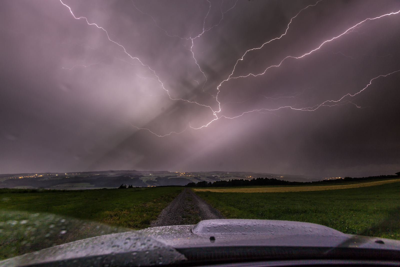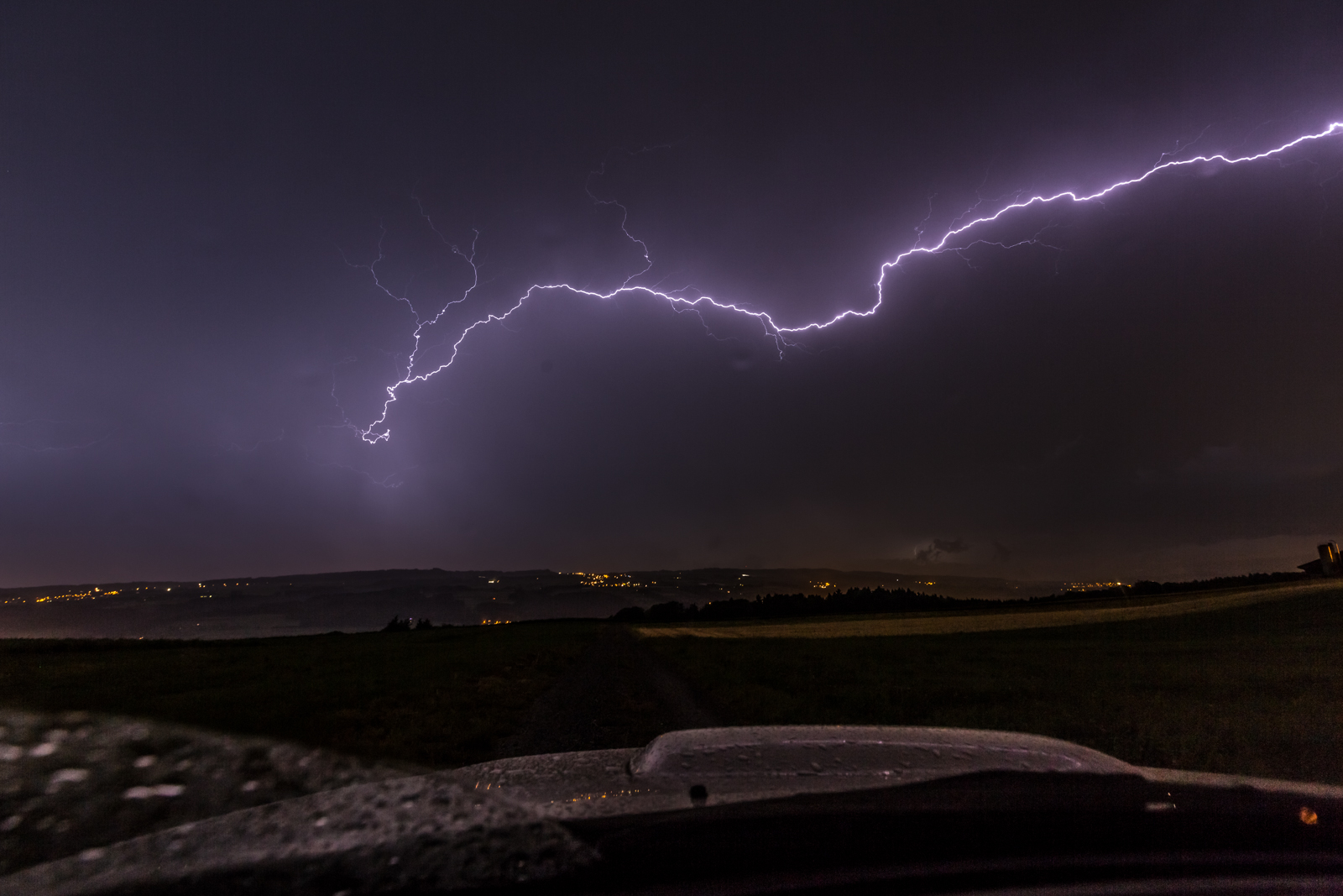 Dabei auch der bisher lauteste Donner den ich je gehört habe. (Einschlag in rund 1.2km Entfernung.)