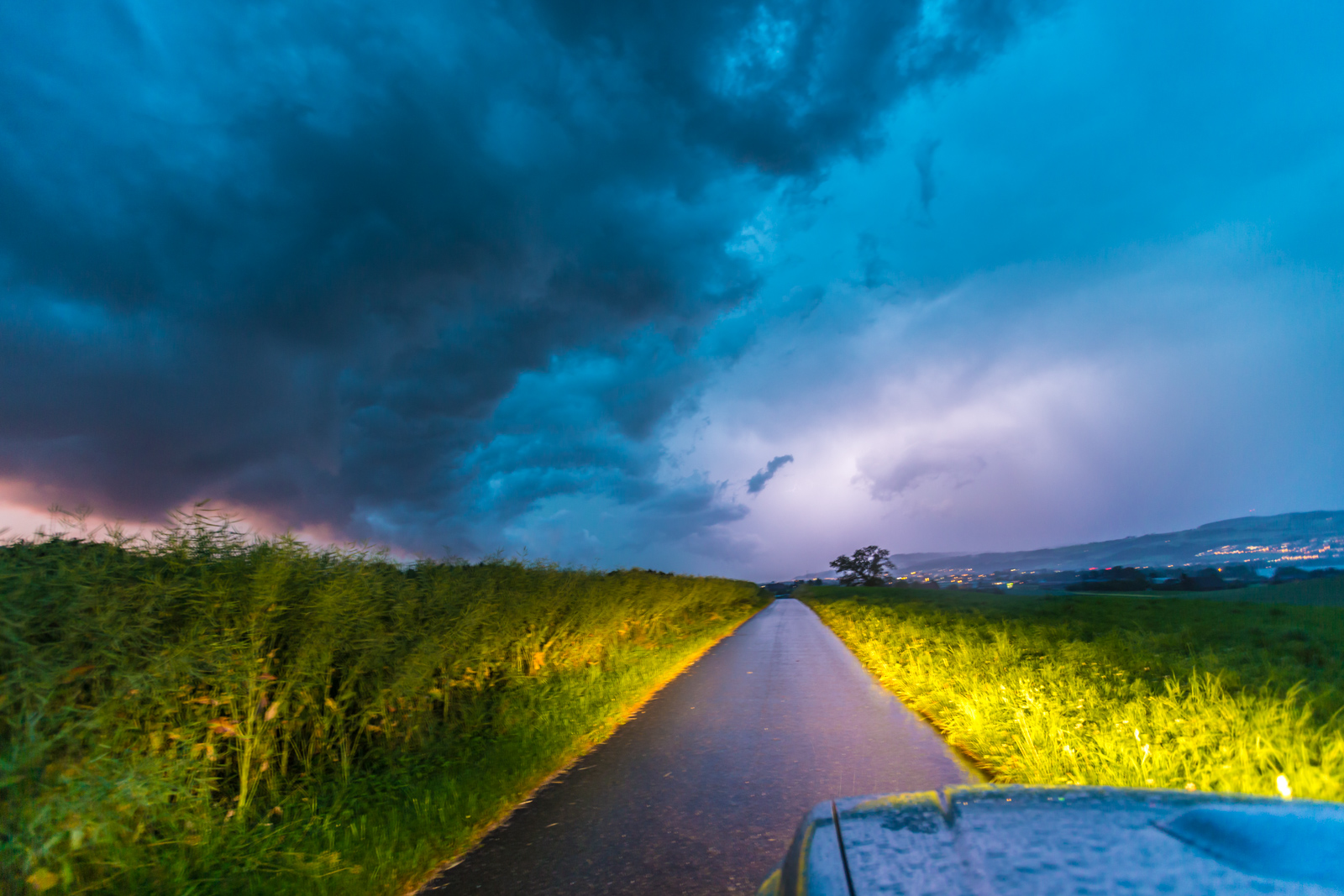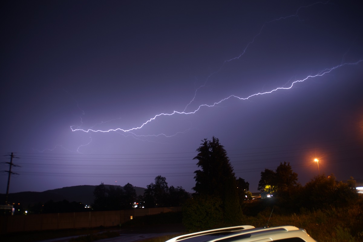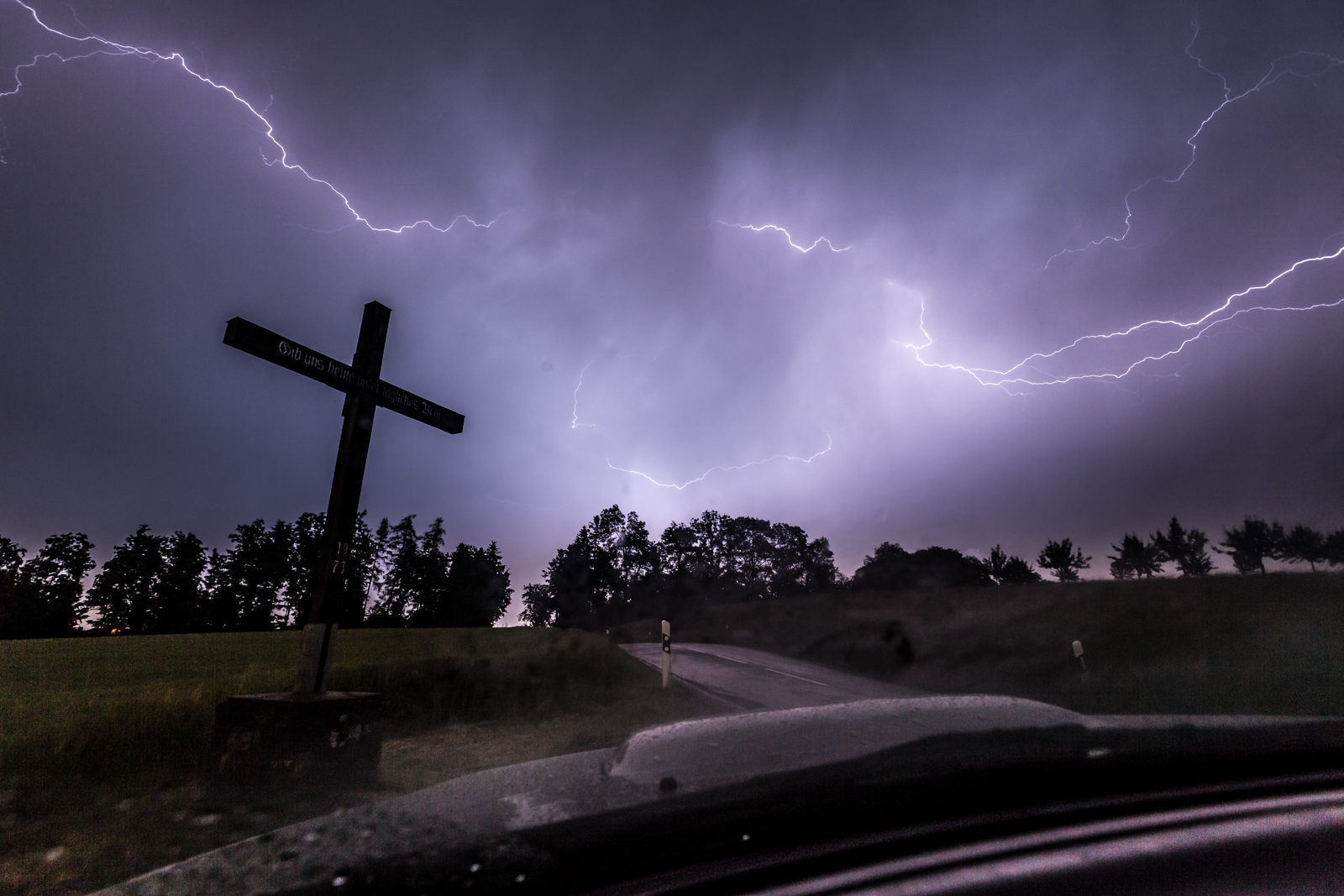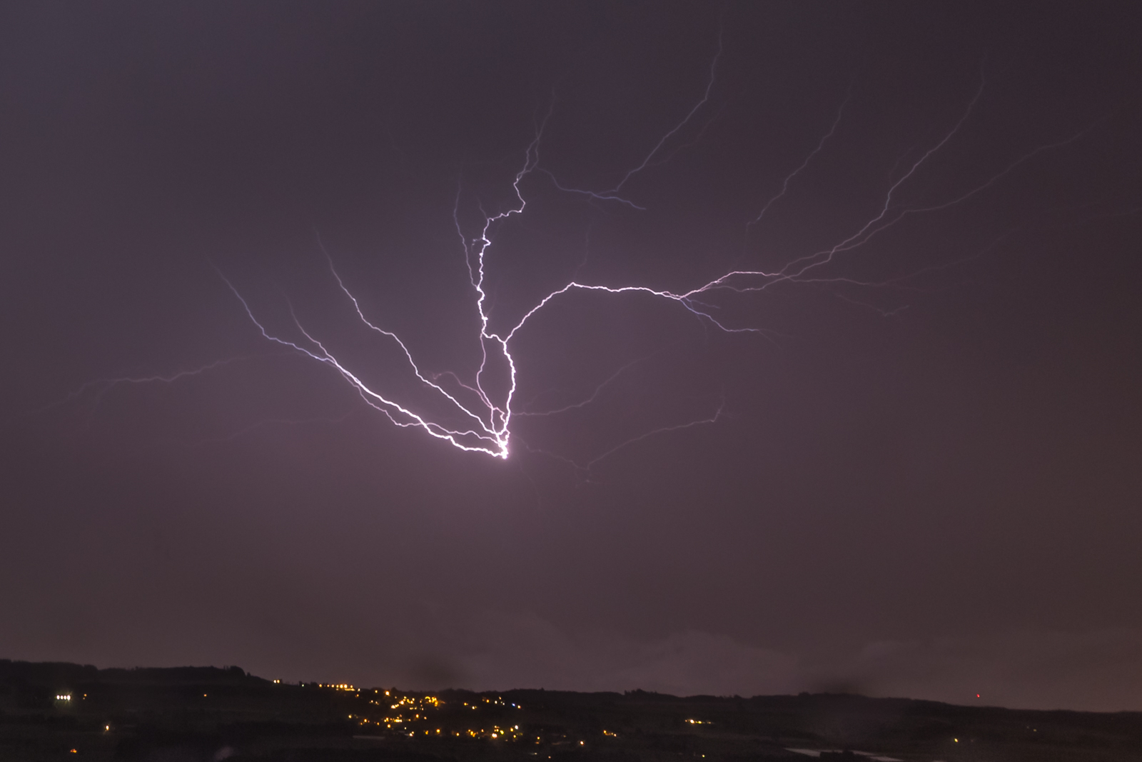 Dabei auch der bisher lauteste Donner den ich je gehört habe. (Einschlag in rund 1.2km Entfernung.)