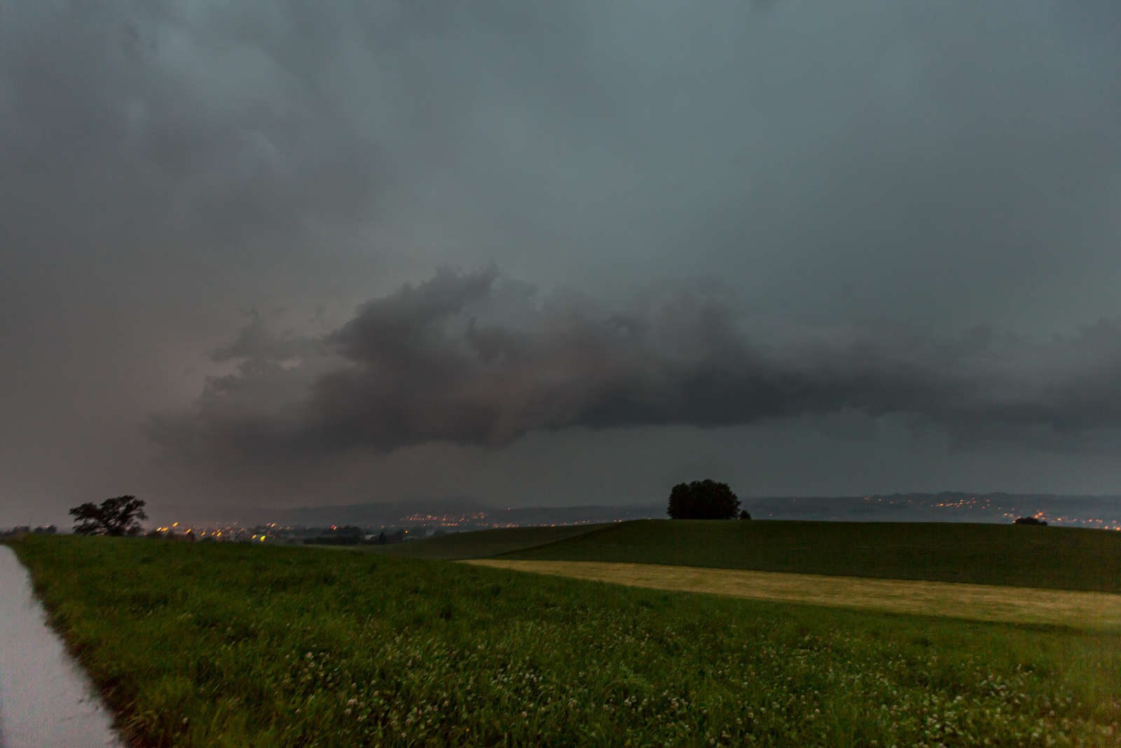 Danach begann es so ziemlich in alle Richtungen des Sektors Süd zu wetterleuchten. Es bildete sich eine über längere Zeit ortsfeste Wolkenwalze über Stallikon, Entstehungsursache unbekannt.