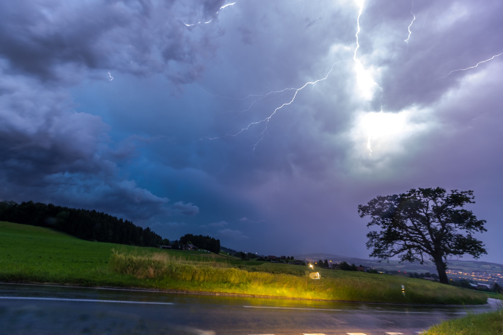 Kurzentschlossen fuhren wir durch das Emmental mit Ziel Luzern um anschliessend noch vor der Zelle dann Richtung Aargau/Zürich oder noch weiter in den Osten uns aufstellen und fotografieren zu können. Oberhalb von Sursee bot sich uns ein geniales Wolkenstruktur- und Blitzspektakel.
