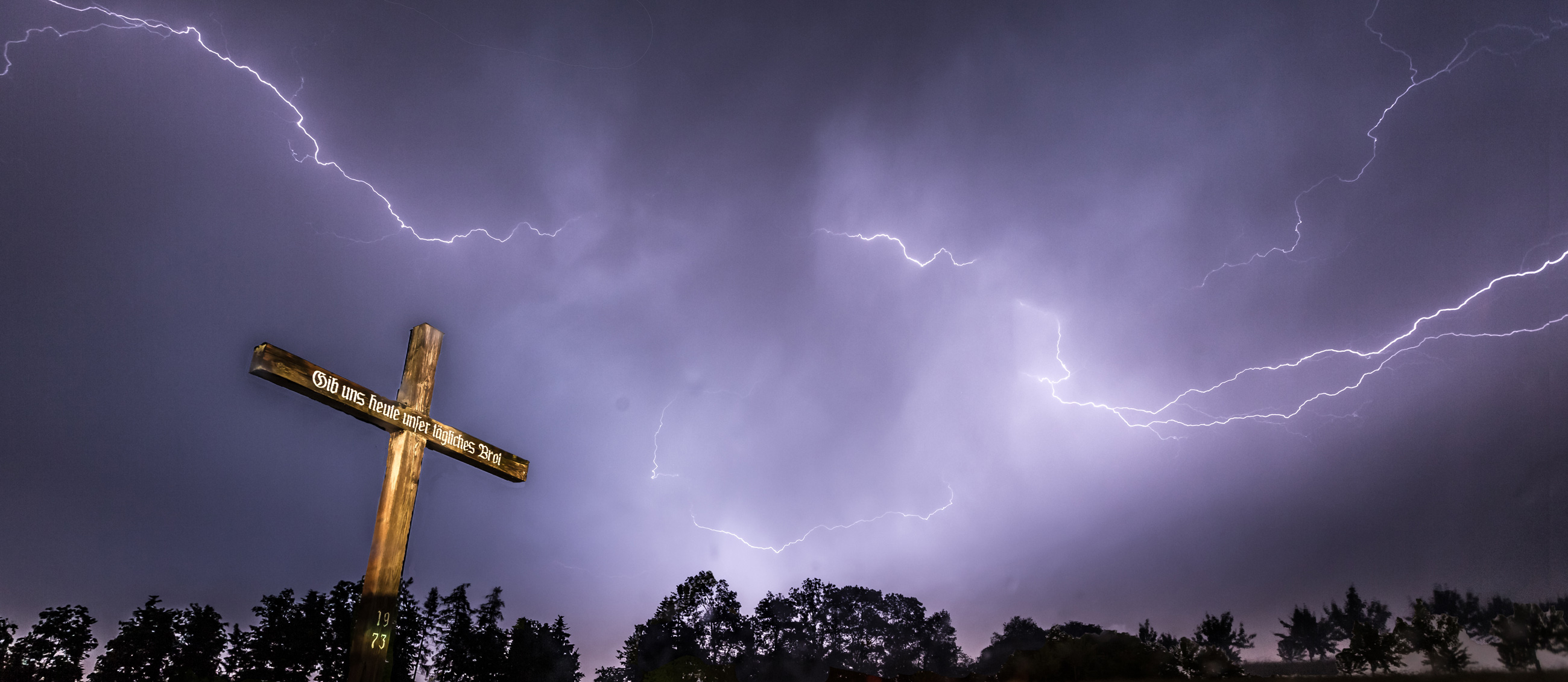 Das, so dachte ich mir, passt doch gut denn auf dem Kreuz steht: "Gib uns unser tägliches Brot heute". Könnte man hier etwas ändern zu "Gib uns unsere täglichen Blitze heute".